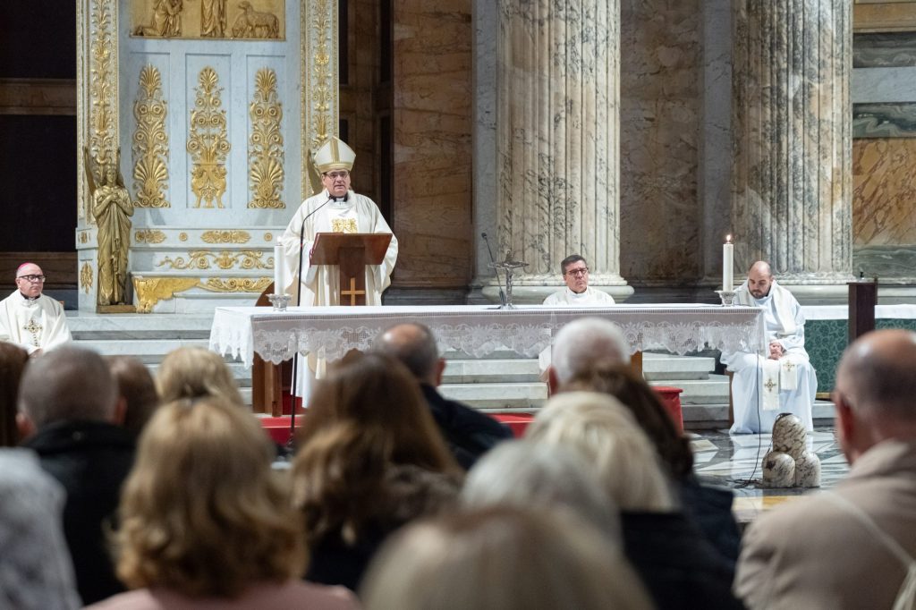 En esta basílica Mayor se celebró una eucaristía presidida por el obispo auxiliar de Valencia mons. Fernando Ramón, quien animó a los peregrinos «a hacer una confesión de fe con nuestras vidas». Una confesión, añadía, «que nos lleve a ser testigos como lo fue San Pablo y como lo fueron los mártires para poder anunciar el Evangelio y llevarlo a nuestros hermanos que hoy no creen o viven alejados de Dios».
