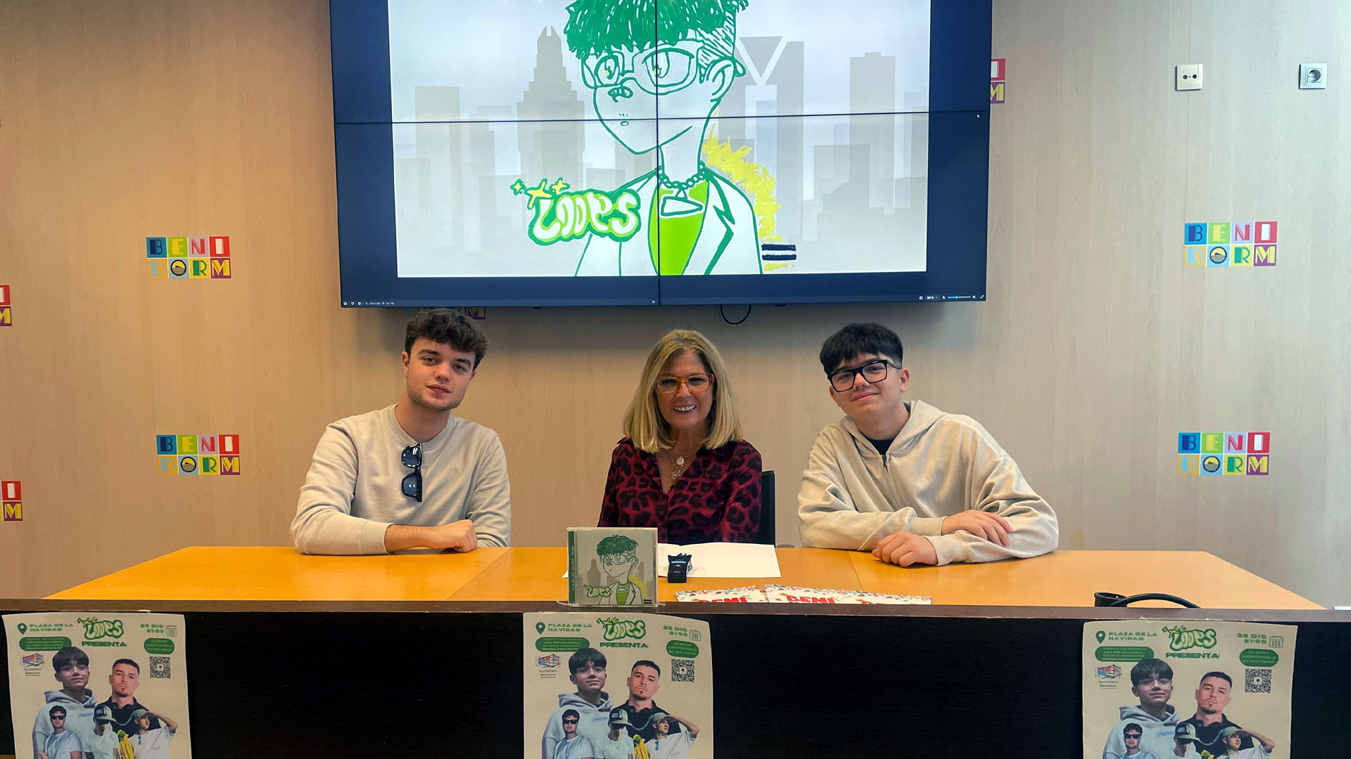 La Plaza de la Navidad de Benidorm, donde se ubica el Ayuntamiento, acoge este jueves, 26 de diciembre, el evento de presentación del primer disco del joven benidormense Pepe López Llorens, cuyo nombre artístico es Loops, un disco que está compuesto por siete canciones y que lleva por título ‘El niño del pueblo’. El evento ha sido presentado este lunes por la concejal de Fiestas, Mariló Cebreros; el propio Loops y Guillem Fuster, su colaborador y quien también participará en este evento músical destinado al público más joven de nuestra ciudad.