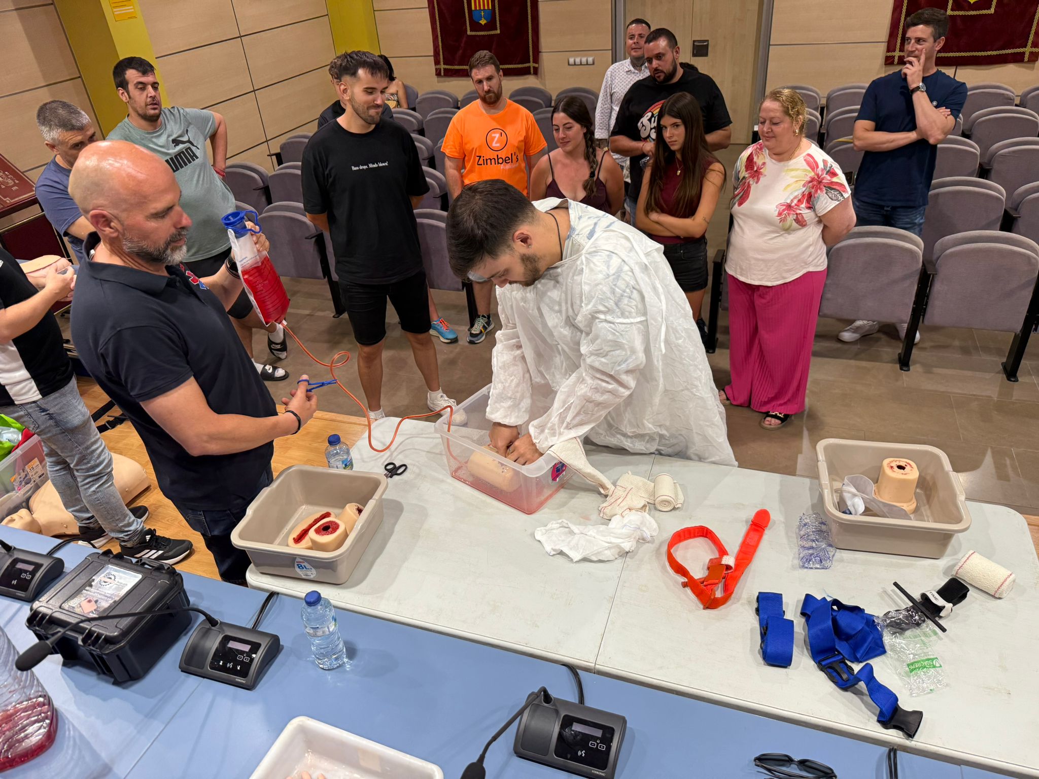 También se han impartido cursos de primeros auxilios a integrantes de las peñas, personas aficionadas y miembros de Protección Civil. Esta formación, que se desarrolla antes del inicio de la temporada taurina, ha seguido la misma línea que el año pasado, ofreciendo contenidos más completos y adaptados a los riesgos y situaciones que pueden producirse durante los ‘bous al carrer’.
