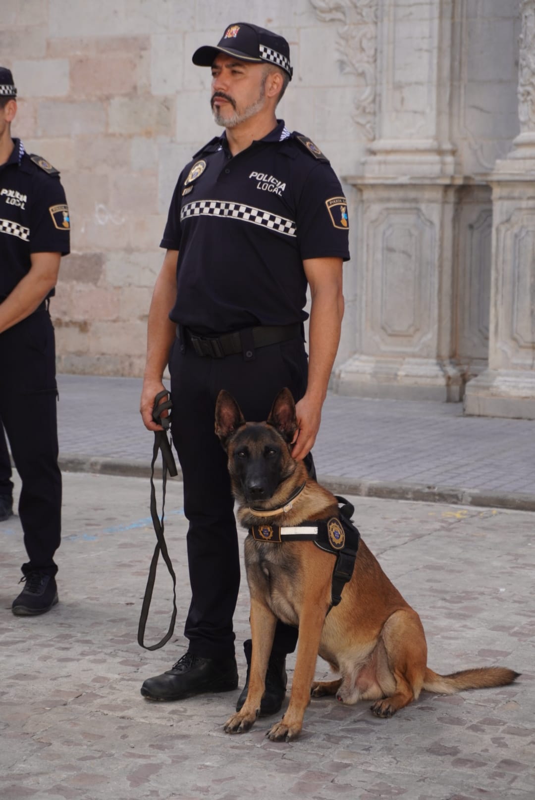 La Policía Local de Burriana ha vivido su día grande, con el acto institucional que ha tenido lugar en la plaza Mayor, seguido de una misa en honor al patrón de la Policía Local y de la Guardería Rural de la ciudad, para celebrar la festividad de San Miguel Arcángel. En el acto se ha presentado el nuevo Grupo Operativo Canino (GOC) de la Policía Local de Burriana, que realizará funciones de vigilancia y de apoyo a las patrullas de los Grupos de Seguridad Ciudadana. El cometido principal del GOC, un perro de la raza pastor belga malinois, será la prevención de la seguridad ciudadana y de la seguridad vial, especialmente en lo que concierne a los delitos contra la salud pública. La Policía Local, con la incorporación del GOC, prestará especial atención al consumo y posible tráfico de drogas en las cercanías de los centros educativos y en lugares que pudieran presentar un factor de riesgo. El Grupo Operativo Canino, también realizará funciones pedagógicas en centros educativos con charlas y exhibiciones.