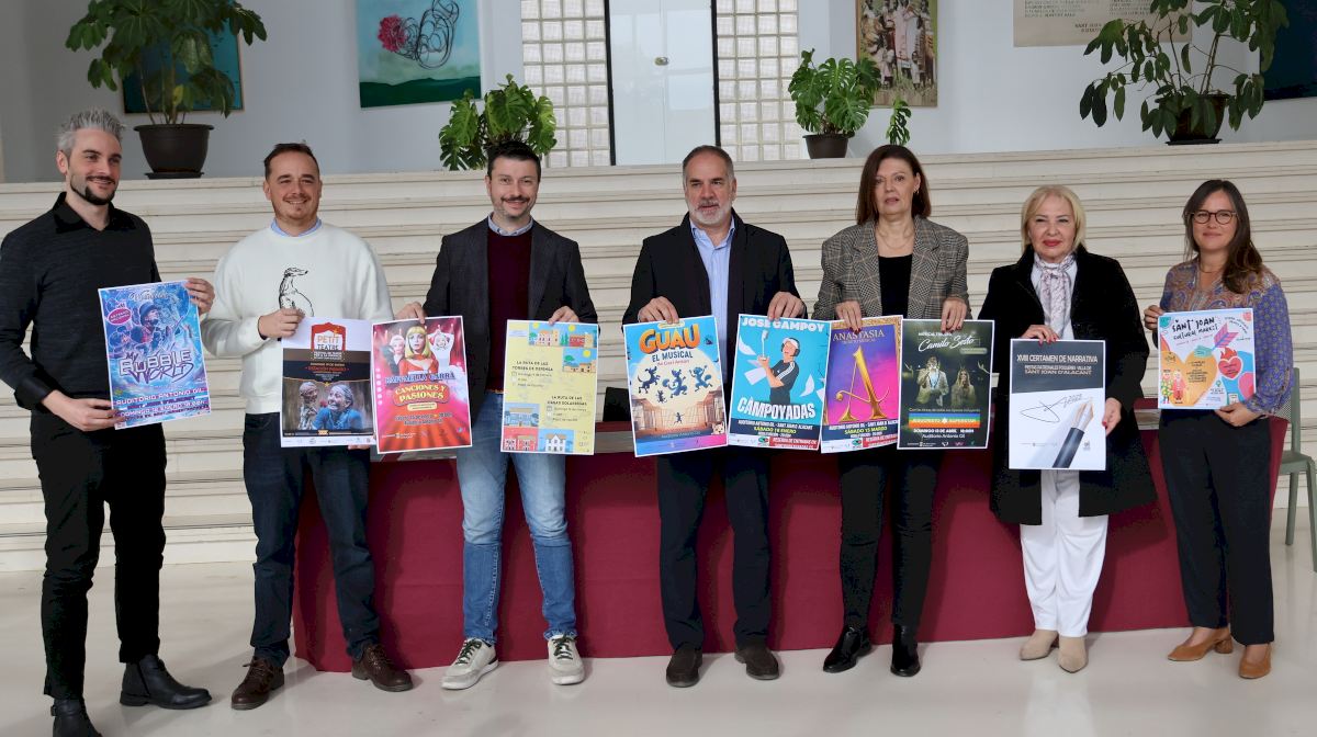 Una programación completa, diversa, familiar y solidaria, que se basa en mantener lo que funciona e innovar intentando platear nuevas y atrevidas propuestas. Esas son las premisas de la “revolución cultural” puesta en marcha en Sant Joan d’Alacant hace un año y por la que va a seguir caminando la Concejalía de Cultura a lo largo de 2025. Esta mañana se ha presentado la programación cultural del primer semestre del año. En una convocatoria celebrada en la Casa de Cultura han intervenido el alcalde, Santiago Román, y el concejal de Cultura, David Aracil, que han estado acompañados por representantes de entidades que forman parte de esa extensa programación, como Pierpaolo Laconi, creador del espectáculo de pompas de jabón ‘My Bubble World’; la presidenta de la Junta Mayor de Cofradías de Semana Santa, Rosa Navarro; la presidenta de la Comisión de Fiestas de Hogueras de Sant Joan, Nines Caro; el coordinador de la Escuela Municipal de Teatro, Noé Vicente; y Paqui Calderón, en representación de La Paca Market Vintage, que regresa a Sant Joan con motivo de la conmemoración del I Centenario La Rambla.