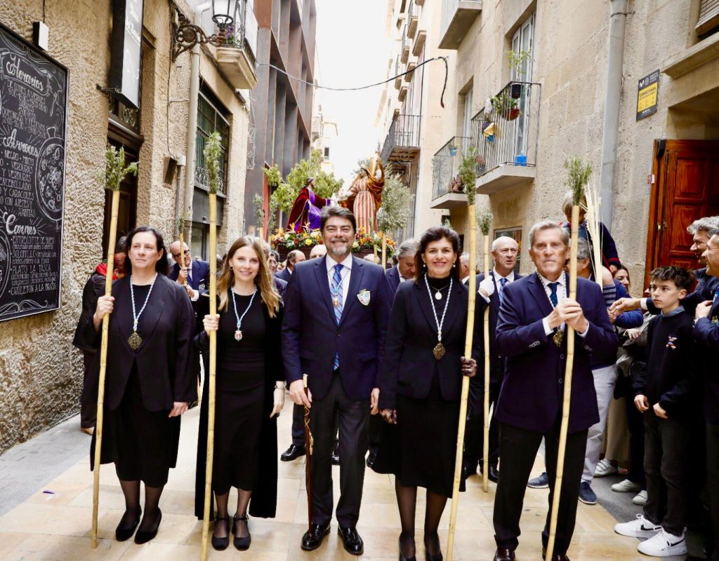 El primer edil, que ha procesionado delante del trono de Jesús en Samaria junto a la concejal Rocío Gómez y que ha dado la señal de partida al hacer sonar la matraca, se ha encontrado con compañeros del colegio, “lo que me supone una motivación extra para acudir a esta procesión, la primera de las que parten desde esa joya del barroco en Alicante que es Santa María”. Al regresar la comitiva al punto de salida se ha producido un Encuentro entre los tres tronos, y en la capilla de la Virgen de la Paz se ha entonado el himno del Colegio Inmaculada Jesuitas “Peña y amplio horizonte”.