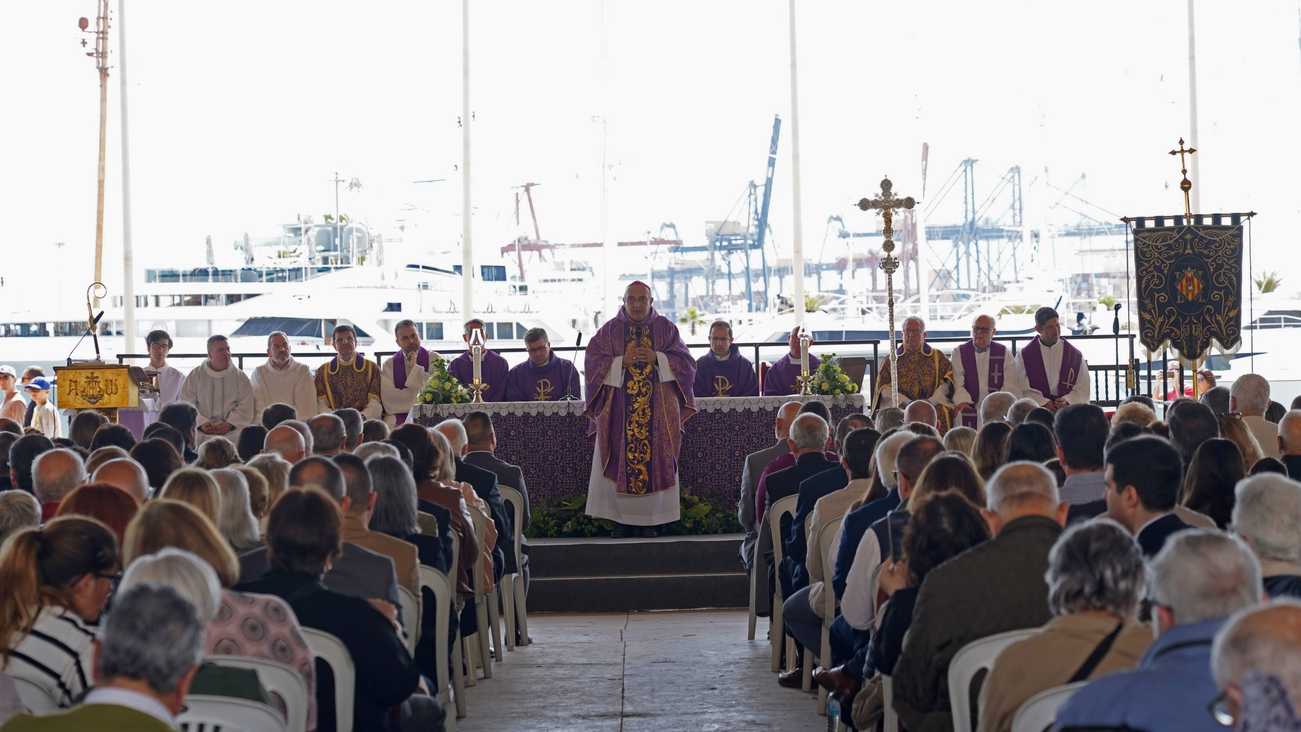 El Arzobispo de Valencia, Mons. Enrique Benavent ha presidido este domingo en el Tinglado 2 del Puerto de València la Misa especial que se celebra con motivo del Centenario de la Junta Mayor de la Semana Santa Marinera de València.