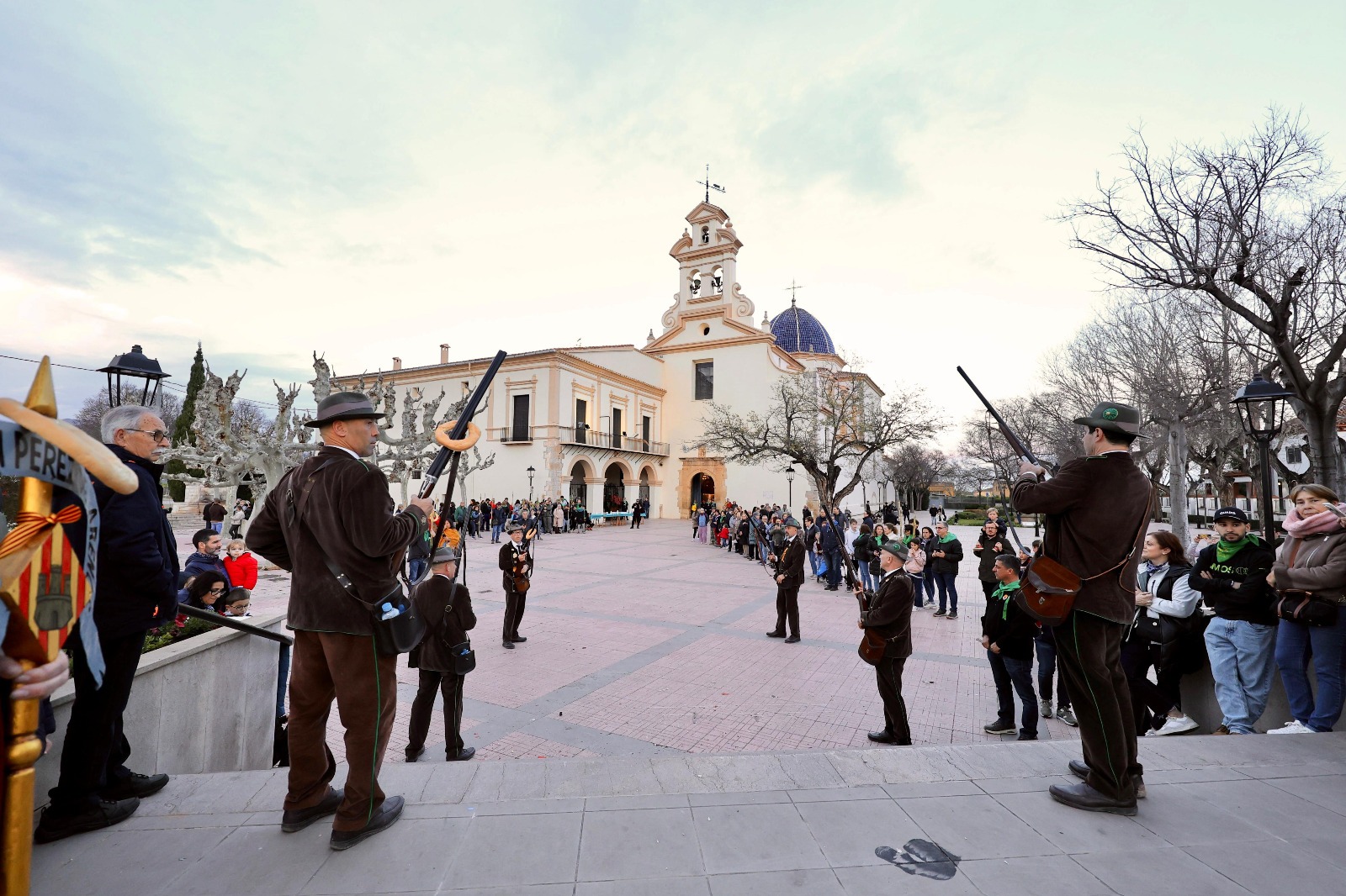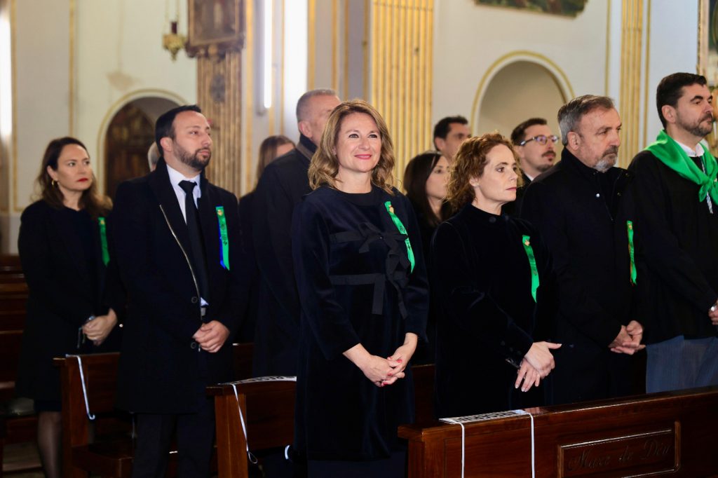 La alcaldesa, Begoña Carrasco, junto a la concejala de Fiestas, Noelia Selma, y otros concejales de la corporación municipal, además del prior de la Basílica, Joaquín Guillamón, así como miembros de la Real Cofradía de la Mare de Déu del Lledó, han recibido la numerosa comitiva que ha ingresado en el templo sito junto al Caminàs.