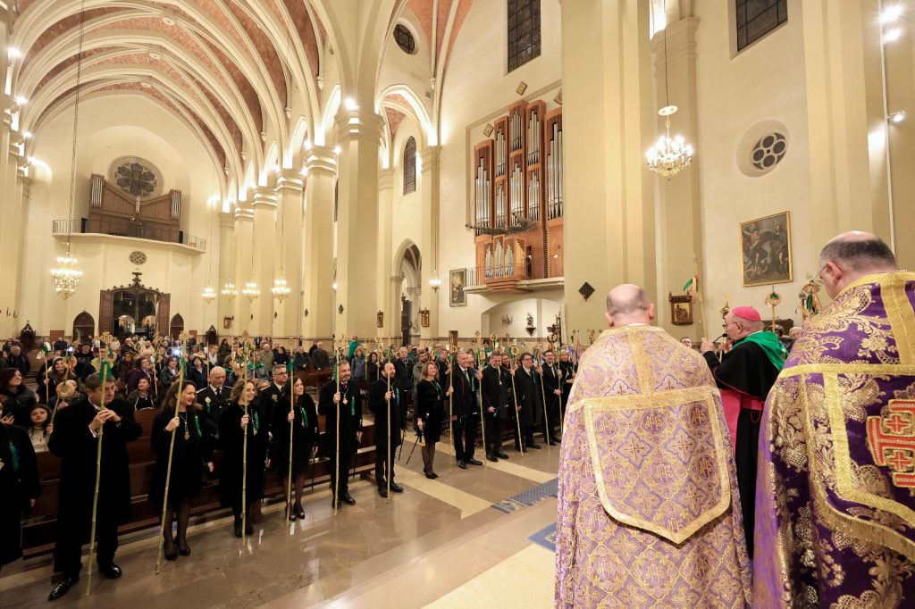 La alcaldesa de Castellón, Begoña Carrasco, acompaña a los romeros en su entrada a la Basílica del Lledó, honrando también a la Patrona de Castellón con el canto de los Gozos y la Salve, en una ceremonia que ha presidido el obispo de la diócesis de Segorbe-Castellón, Casimiro López Llorente.