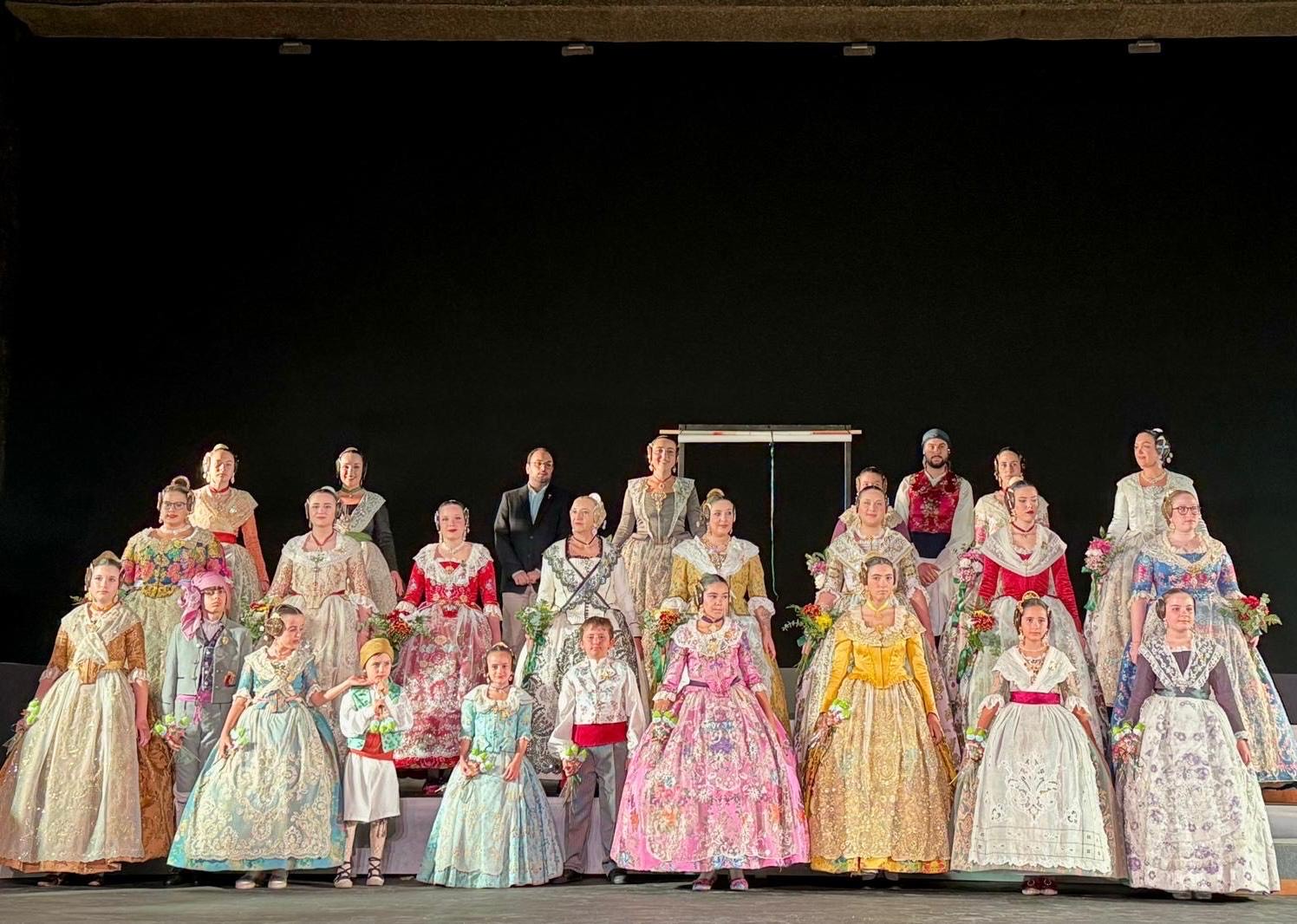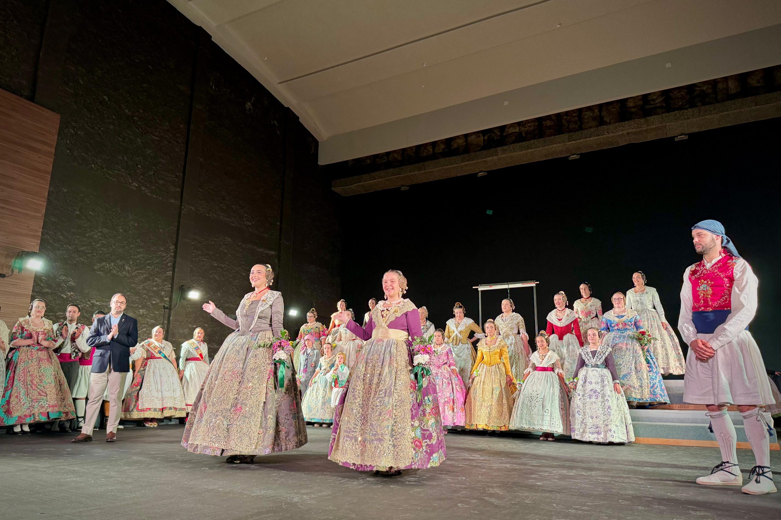 Presidida per les falleres majors de la ciutat, Irene Camacho i Ariadna Bernal, la cerimònia ha tingut lloc al Teatre Municipal Carmen Tur, que s’ha omplit per a aclamar a les noves falleres majors i presidents infantils de cadascuna de les nou comissions falleres. Una a una, les representants han accedit a l’escenari precedides pels estendards de cada falla per a rebre de mans dels presidents la joia que les acredita com a màximes representants de les seues comissions.