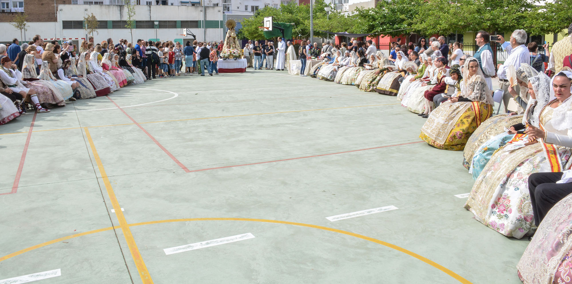 En la fiesta del barrio de Ruzafa han participado los alumnos, profesores y familias de los colegios, las Fallas, la Asociación de San Vicente Ferrer, los encargados del Mercado, y “todos los devotos que han querido para celebrar el Centenario de la Coronación de la Virgen de los Desamparados que conmemoraremos los días 12, 13 y 14 de mayo”.