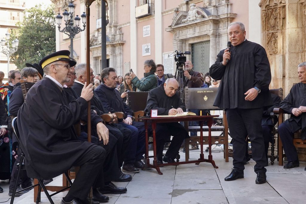 “En los más de mil años de historia del Tribunal de las Aguas no se había celebrado nunca un acto como el de hoy, que nos llena de orgullo, y es un honor tener con nosotros a la Mare de Déu dels Desamparats. Le pedimos por todos los valencianos y por todas las familias que están en Turquía sufriendo por el terremoto”, ha destacado el presidente de la institución.