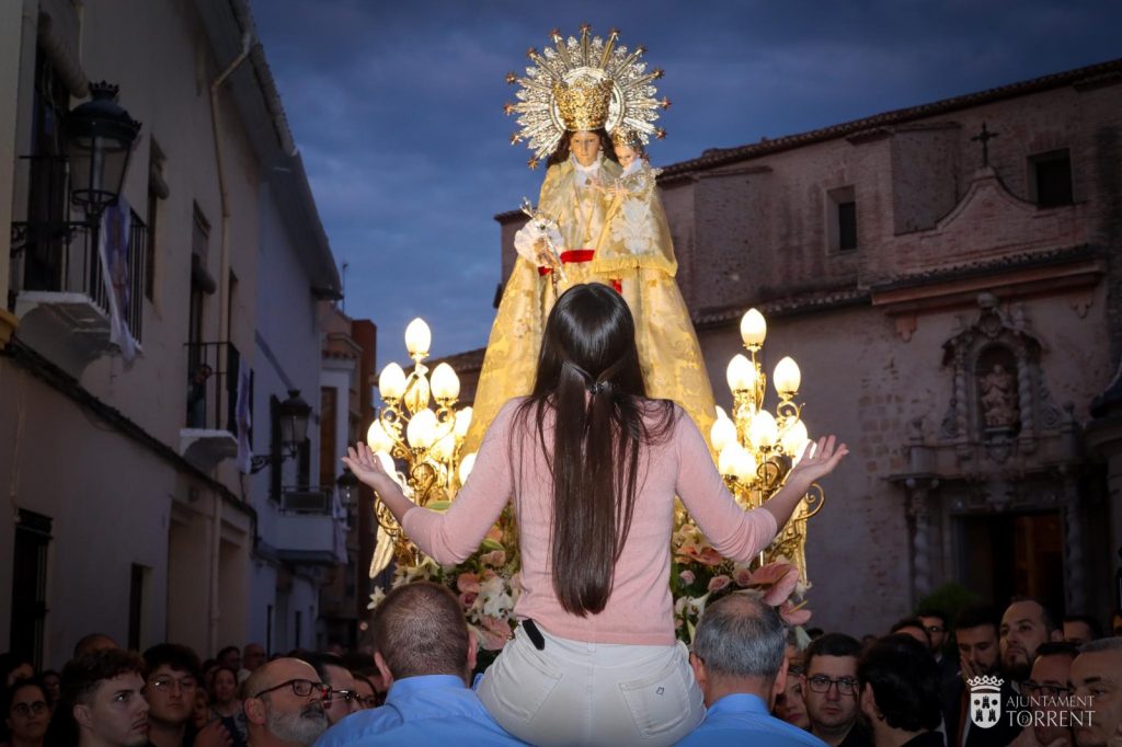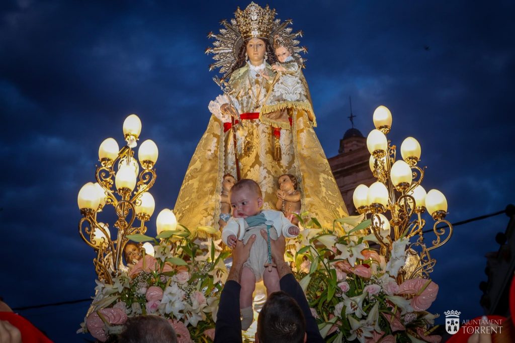 Este martes tiene lugar el tradicional besamanos a la Virgen desde las 10.00 horas, por donde pasarán miles de torrentinos y torrentinas a honrar a su patrona en la Parroquia de San Luís Bertrán., que finalizará con una misa en recuerdo de los difuntos de la cofradía.