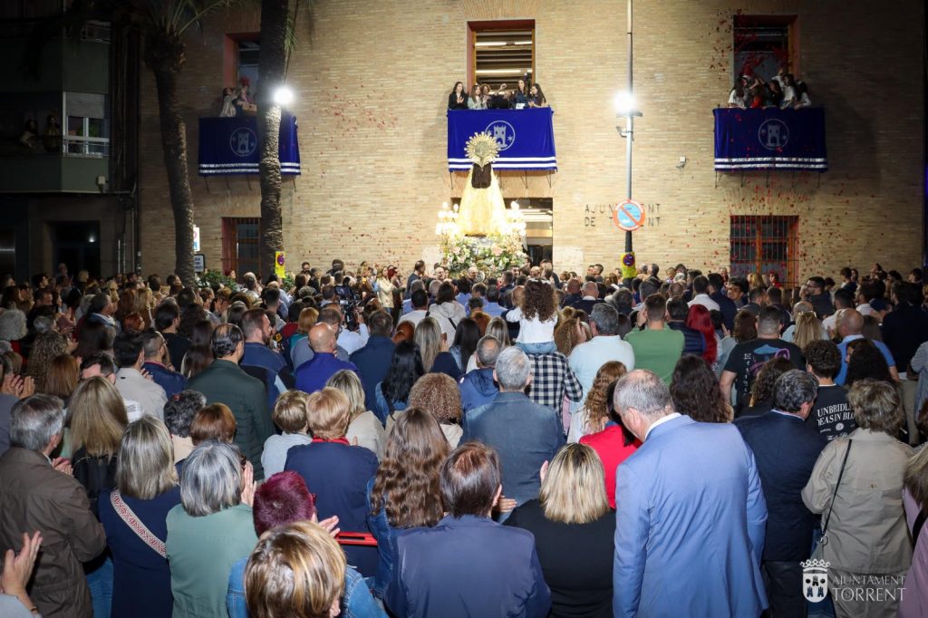 La Virgen de los Desamparados ha regresado este lunes a la Parroquia de San Luis Bertrán acompañada de miles de torrentinos que durante horas le dirigieron poesías en su honor desde la Parroquia de la Asunción de Ntra. Sra. Además, durante todo el trayecto se lanzaron miles de pétalos desde los balcones, muestra del fervor de los torrentinos por su patrona.