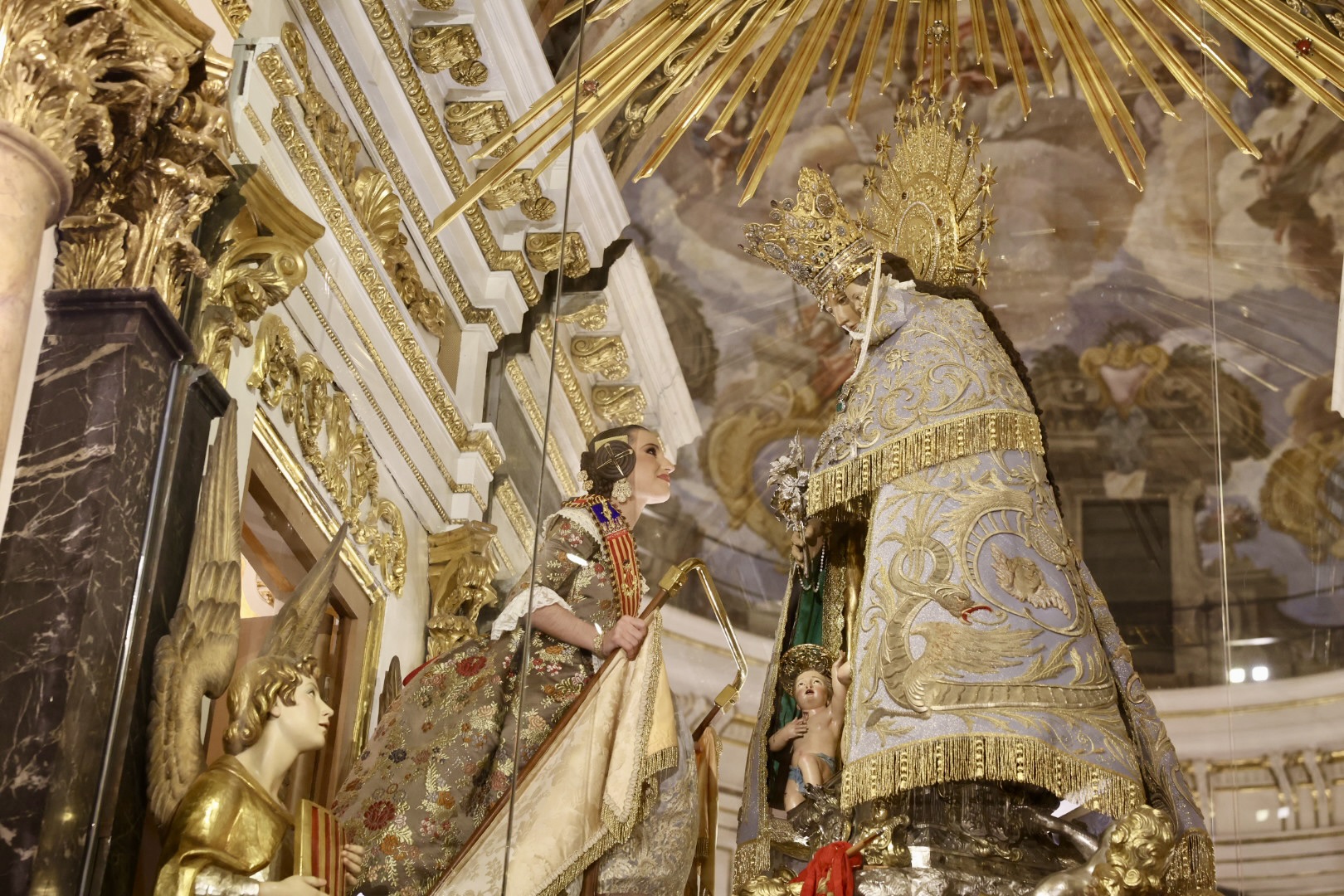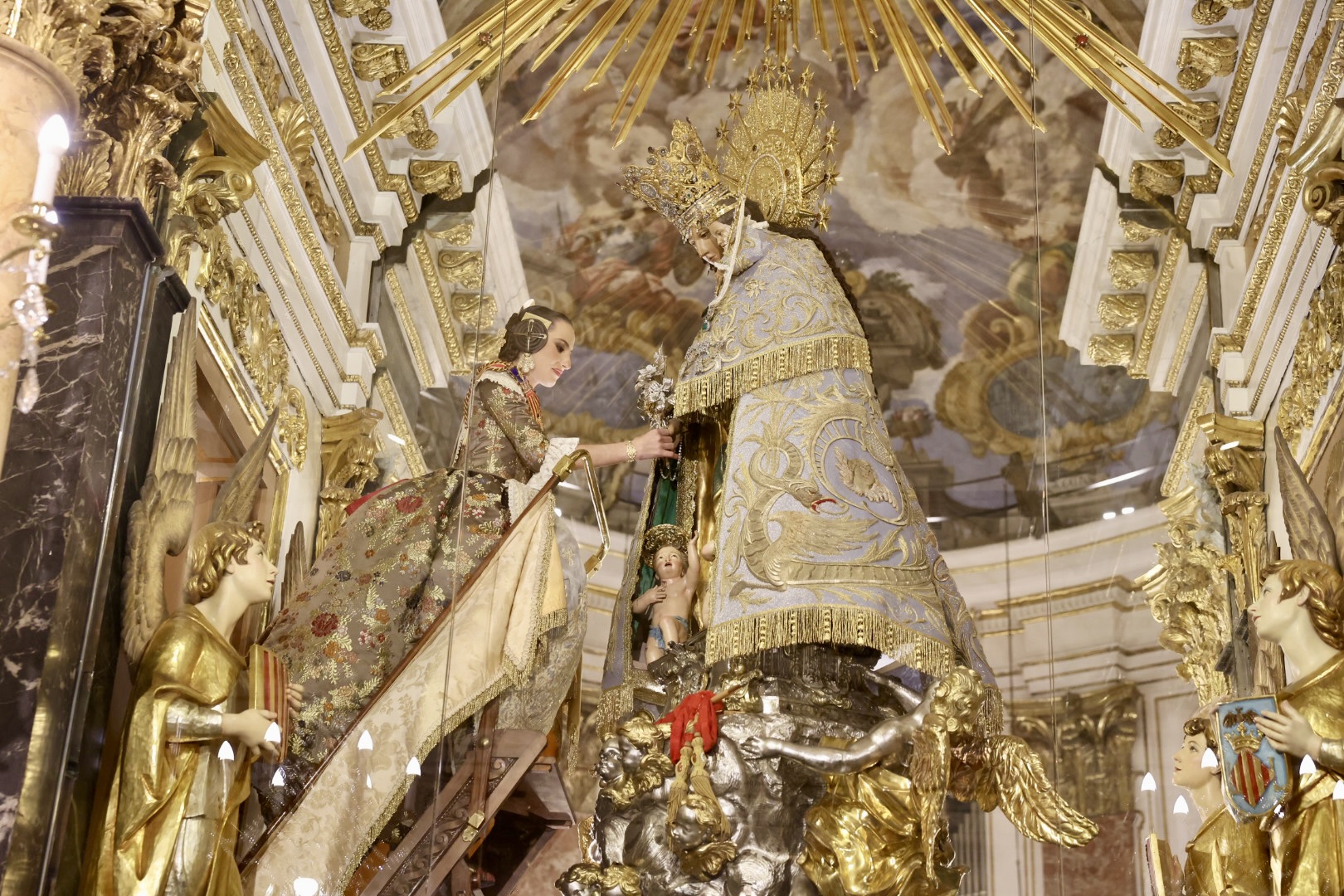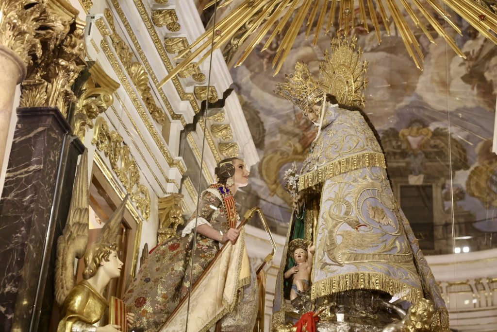 Després de les exaltacions de les Falleres Majors de València i les seues Corts d’Honor, la Basílica és sempre l’escenari final d’un cap de setmana carregat de sentiments. I és que si en el Palau de la Música es va celebrar per a elles un dels moments més especials en el calendari amb el món faller com a públic, en la Basílica viuen un fermall íntim i emocionant amb la Geperudeta com a única testimoni.