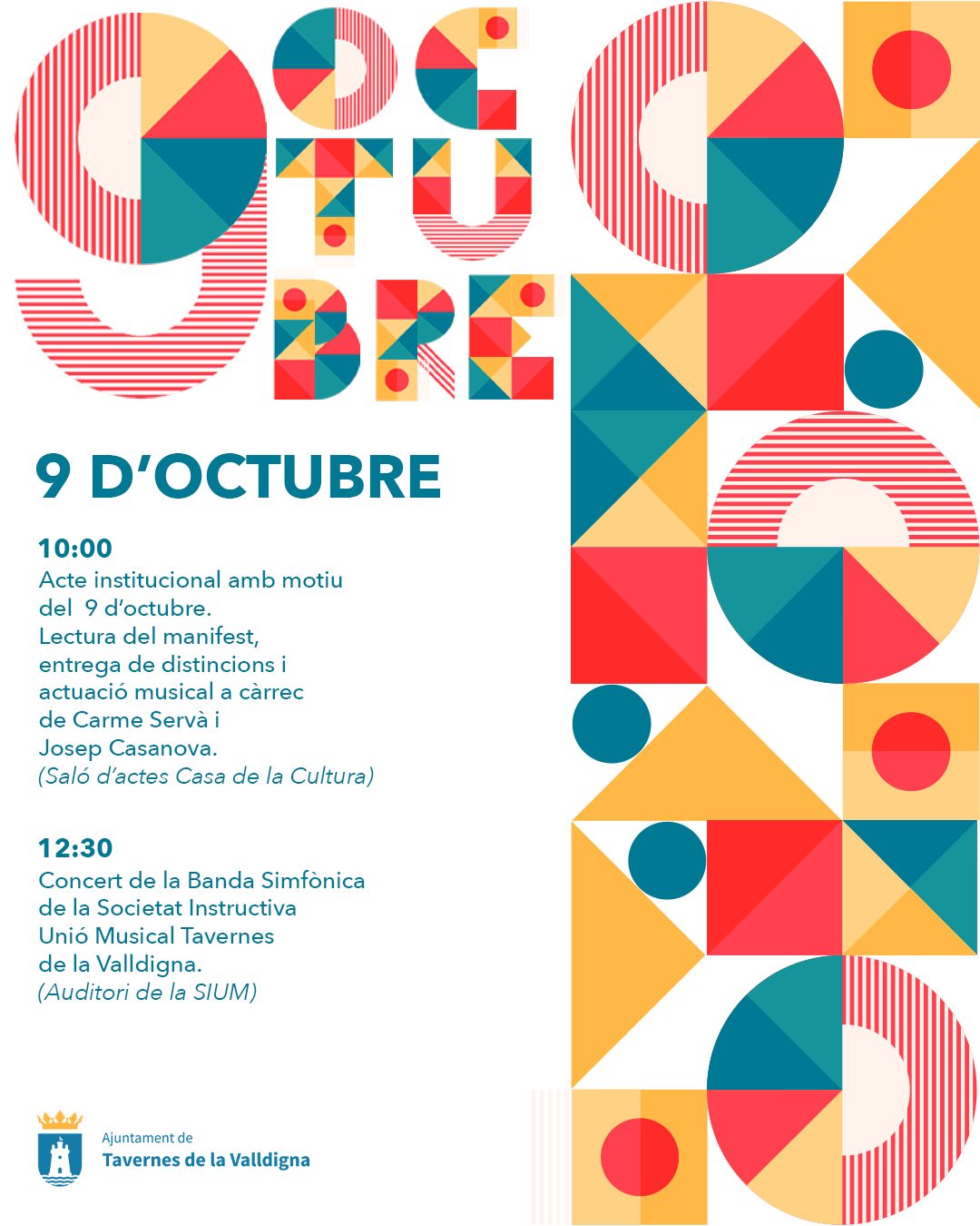 La festivitat continuarà, una vegada finalitzat l’acte institucional, amb el tradicional concert de la banda simfònica de la SIUM (Societat Instructiva Unió Musical) de Tavernes de la Valldigna en l’auditori de l’entitat musical a les 12.30 hores.