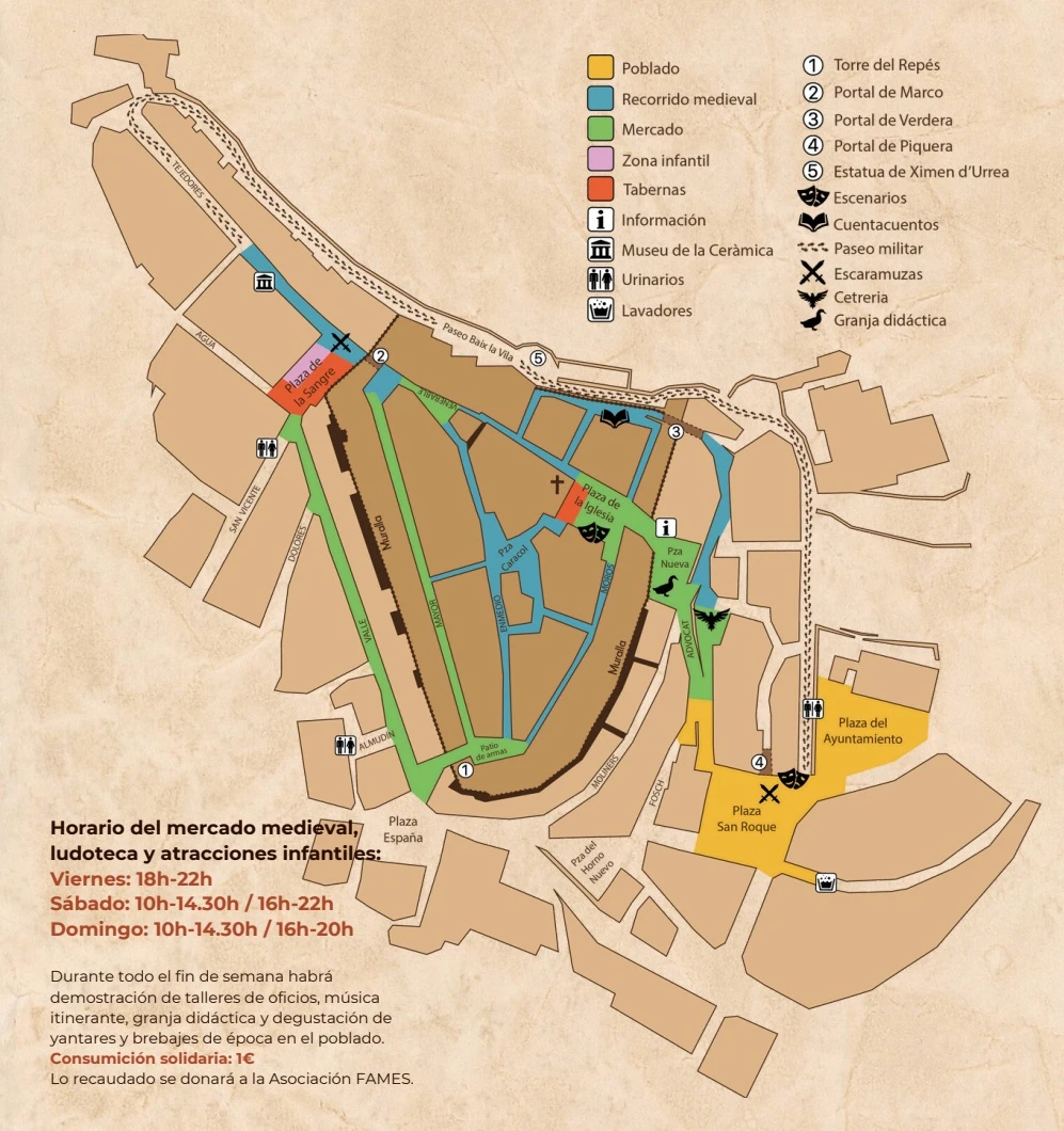 - Las niñas y niños, junto a sus familias o acompañantes, deberán ir vestidos de acuerdo a la época (siglo XIII). Si es posible, se recomienda que lleven armas de madera para la batalla.