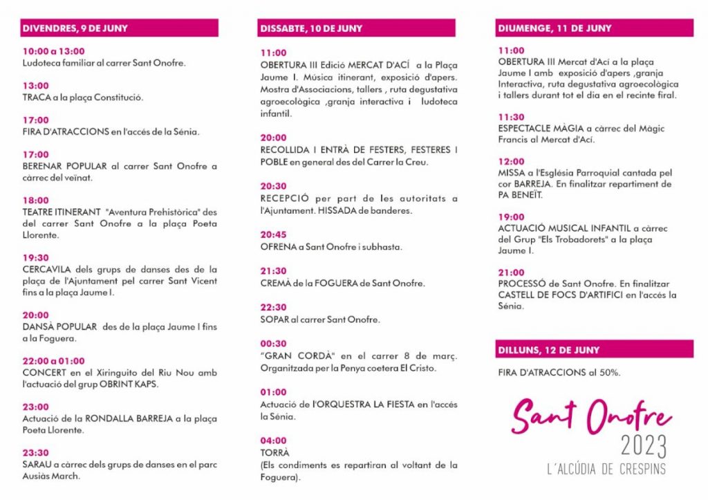 El pròxim cap de setmana l’Alcúdia de Crespins celebrarà les tradicionals festes patronals en honor a Sant Onofre amb un ampli ventall d’actes culturals, lúdics i religiosos, en què destaca la tradicional Foguera de Sant Onofre, que a hores d’ara engega la seua recta final per a la Cremà el dia 10 de juny.