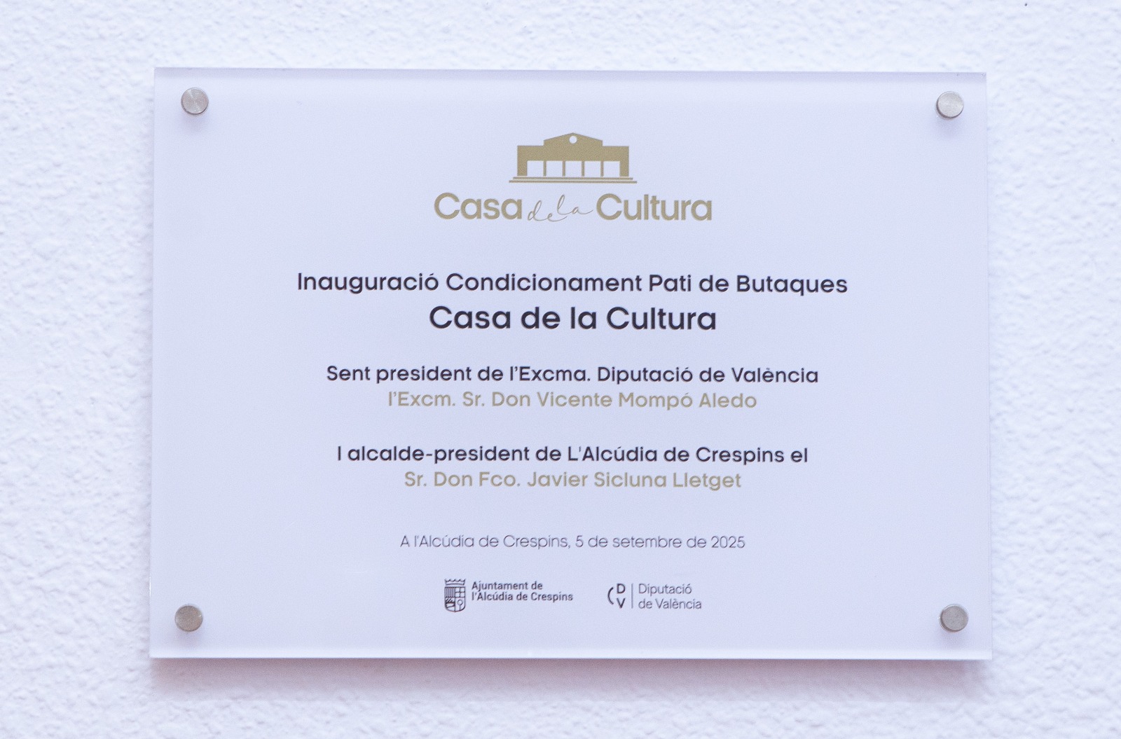 La Casa de Cultura de l’Alcúdia de Crespins torna a obrir les seues portes després de la inauguració oficial, celebrada durant la vesprada d’ahir divendres 5 de setembre de 2025. L’acte, presidit per l’alcalde de la localitat, Javier Sicluna, i la regidora d’Urbanisme, Noemí González, ha comptat amb la presència del president de la Diputació de València, Vicent Mompó.