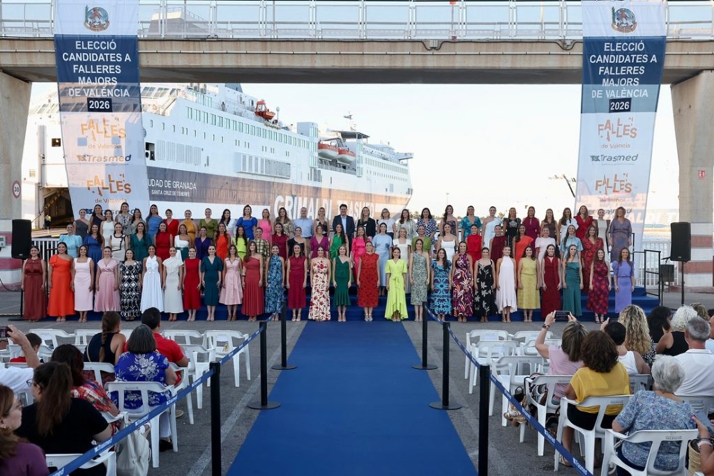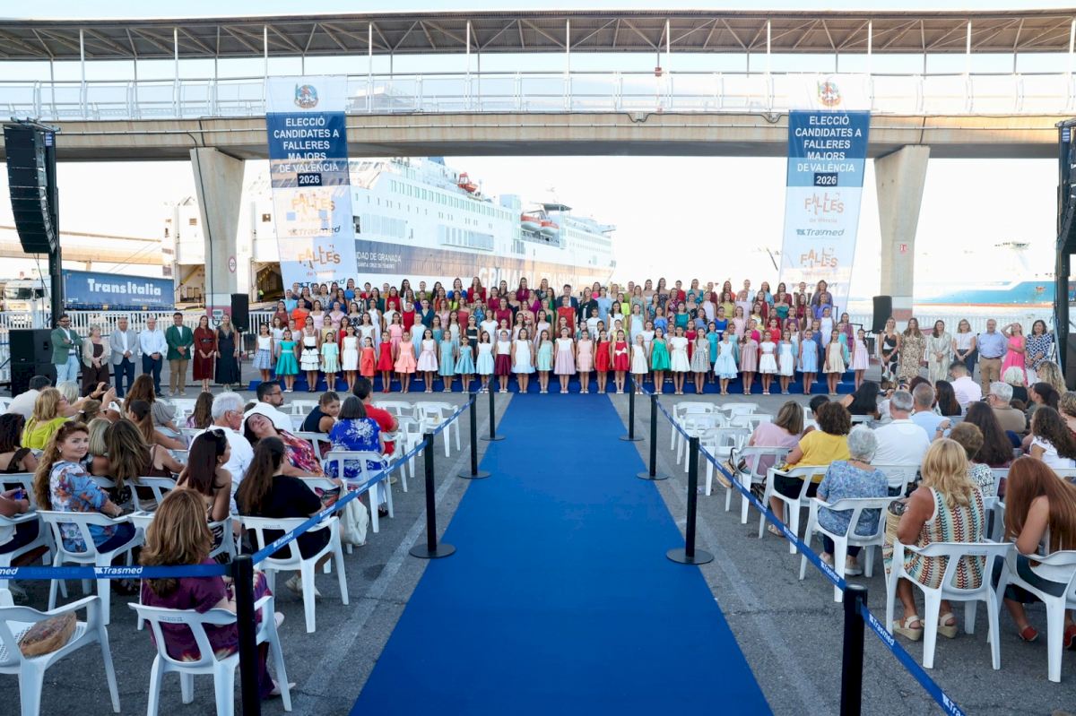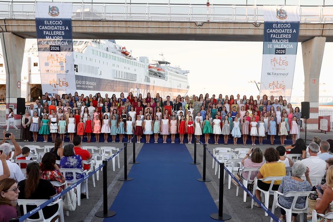 Ayer jueves tuvo lugar en la terminal de Trasmed del Puerto de Valencia, el acto de presentación de las candidatas a Falleras Mayores de Valencia 2026 a los jurados que tendrán la decisión de elegir a las nuevas máximas representantes del mundo fallero.