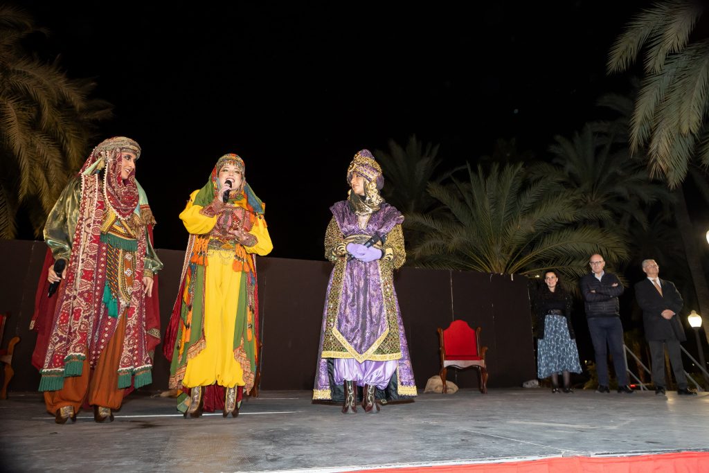 La comitiva ha continuado por la calle Calderón, avenida de Alfonso El Sabio y Rambla de Méndez Núñez para finalizar en la plaza Rambla-Explanada. Unos pajes distribuidos a lo largo del recorrido han sido quienes han ido recogiendo las cartas. Lo han hecho vestidos con túnicas y cintas confeccionadas en telas ricas, con una serie de adornos complementarios a tono con la Cabalgata. Y ya, en un escenario localizado en el punto final del recorrido, las Carteras han podido recibir, de las propias manos de los pequeños, las misivas con todas las peticiones para la mágica noche de hoy domingo.