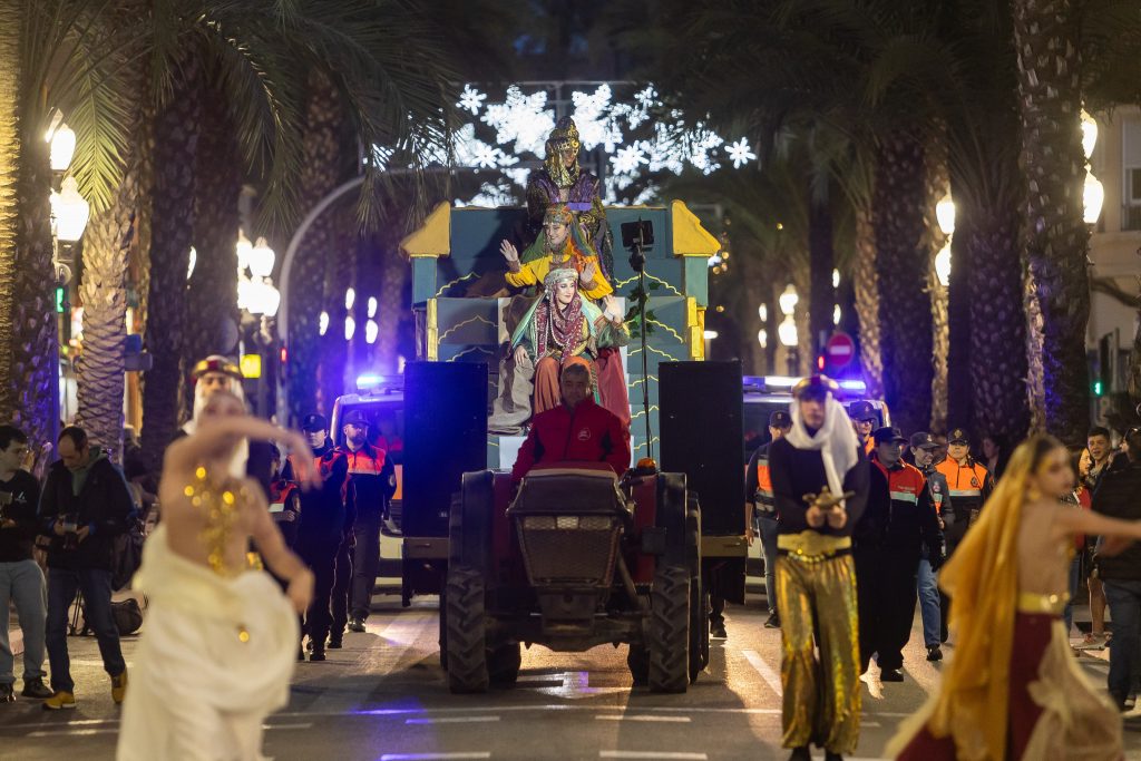 Los Reyes Magos, representados por Hermann Schwarz (Melchor), Ignacio Gally (Melchor) y Fernando Candela (Baltasar), llegan a Alicante en la tarde de este domingo 5 de enero. Poco después de las 17 horas, arribarán al Puerto de Alicante en una embarcación de la Guardia Civil. A continuación, se dirigirán sobre las 18 horas a la Plaza de Toros para realizar el primer saludo a los pequeños. Seguidamente llegarán al Palacio Provincial para que, en torno a las 19 horas, comience la Cabalgata. Ésta, después de discurrir por la avenida de la Estación, plaza de Los Luceros, avenida de Alfonso El Sabio, Rambla de Méndez Núñez y calle Altamira, concluirá en la plaza del Ayuntamiento. Allí, y desde un escenario localizado delante de la fachada principal de la Casa Consistorial, Sus Majestades volverán a dirigirse a los niños.