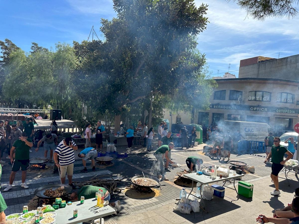 La jornada arrancó con hinchables y animación infantil para los más pequeños. Ello dio paso a una globotà y al concurso de paellas, las cuales fueron degustadas por un jurado específico, recayendo el premio a la mejor paella a leña en la falla Topairet, mientras que el premio a la mejor paella a gas fue para la comisión Monte Montiel.