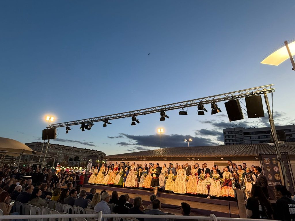 La tarde ha empezado con un acto protocolario presentado por Boro Peiró y Claudia Mas, donde los artistas falleros han subido al escenario junto a los representantes de cada comisión y seguidamente lo han hecho la Corte de Honor y Falleras Mayores de Valencia 2025. A continuación, Rafa Mengó, ha hecho su discurso como presidente de la Federación, seguidamente la Berta Peiró como Fallera Mayor de Valencia y para finalizar los discursos el presidente de JCF, Santiago Ballester. El acto protocolario ha finalizado con el Himno Regional cantado por David Montoliu.