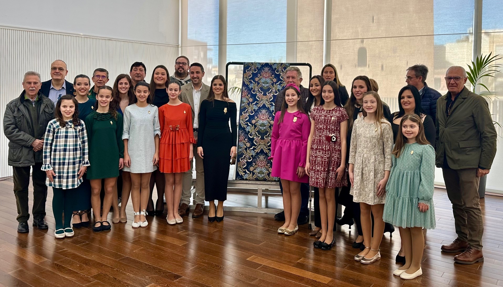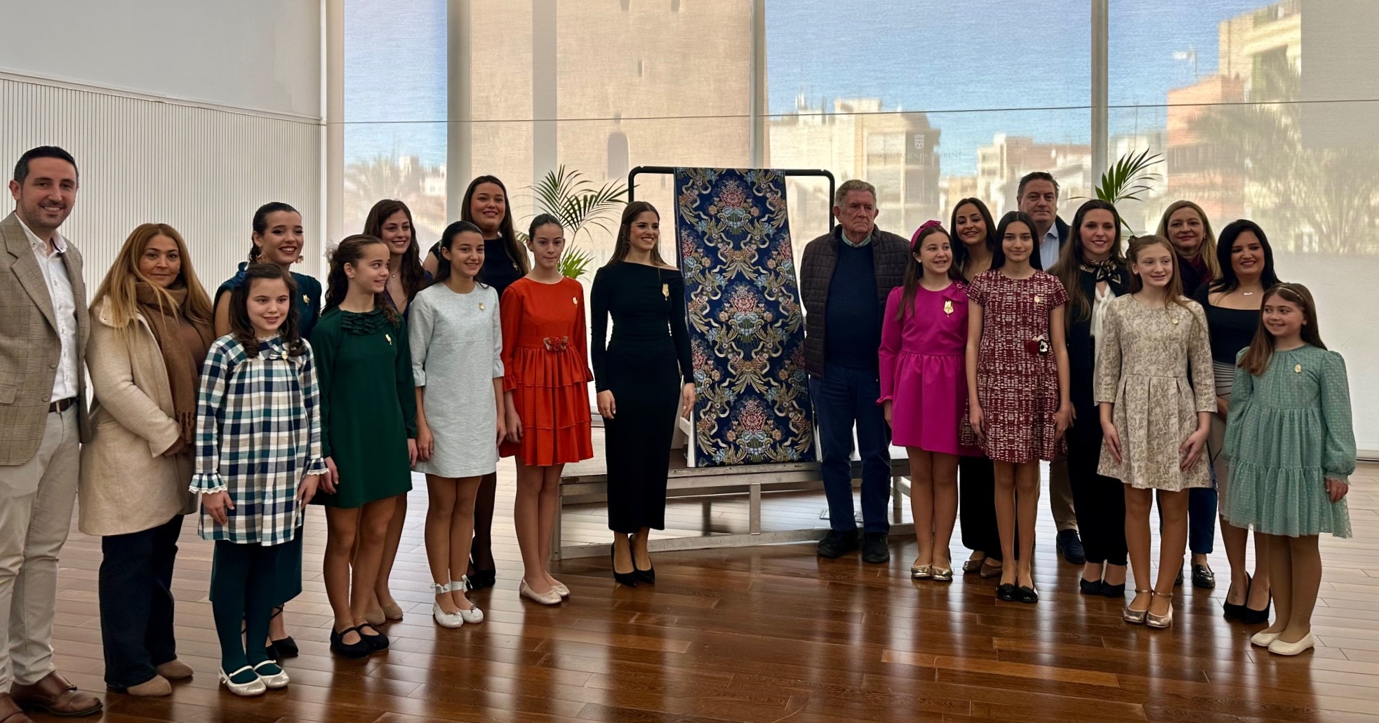 El acto de presentación de la tela congregó a numerosos falleros en la Sala Cívica de l’Antic Mercat. Entre los asistentes destacaron la Fallera Mayor de Torrent, Alicia Moreno, y la Fallera Mayor Infantil, Ana Barberá, quienes estuvieron acompañadas por sus respectivas Cortes de Honor. También estuvieron presentes el concejal de Fallas, Aitor Sánchez; el vicepresidente de la Junta Local Fallera, Roberto Gómez; y el presidente de la Cofradía, Vicente Benavent, junto a otros miembros de la organización.