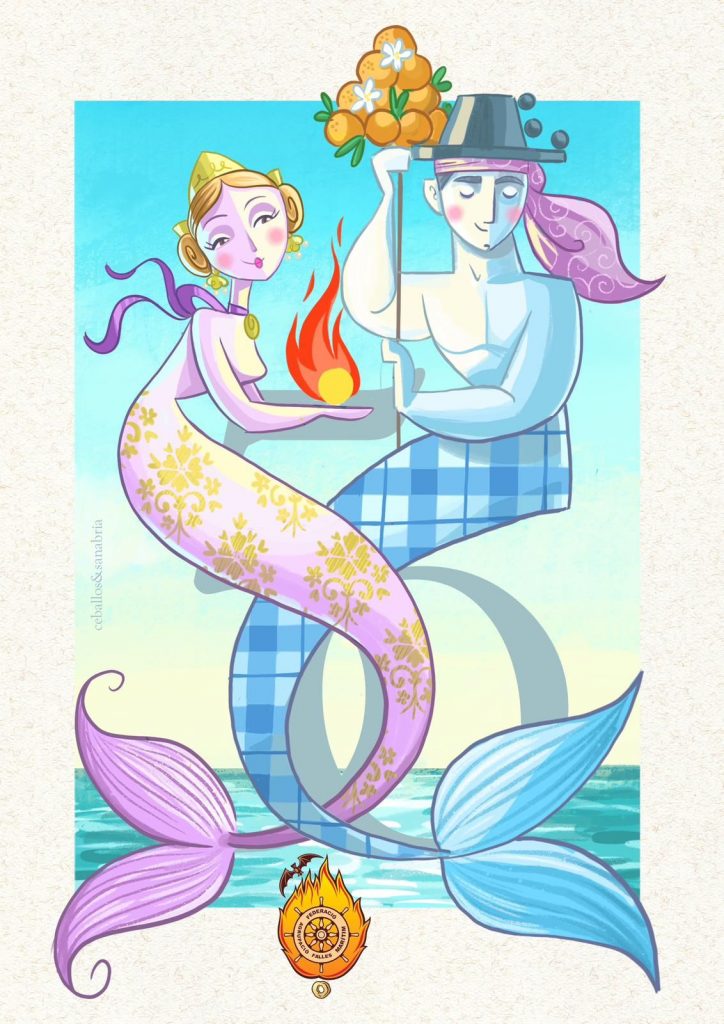 La imagen que han diseñado consta de dos sirenas unidas en el 50 y la sirena en la mano lleva el fuego que está situado encima del 5, para el cumple de la Agrupación.