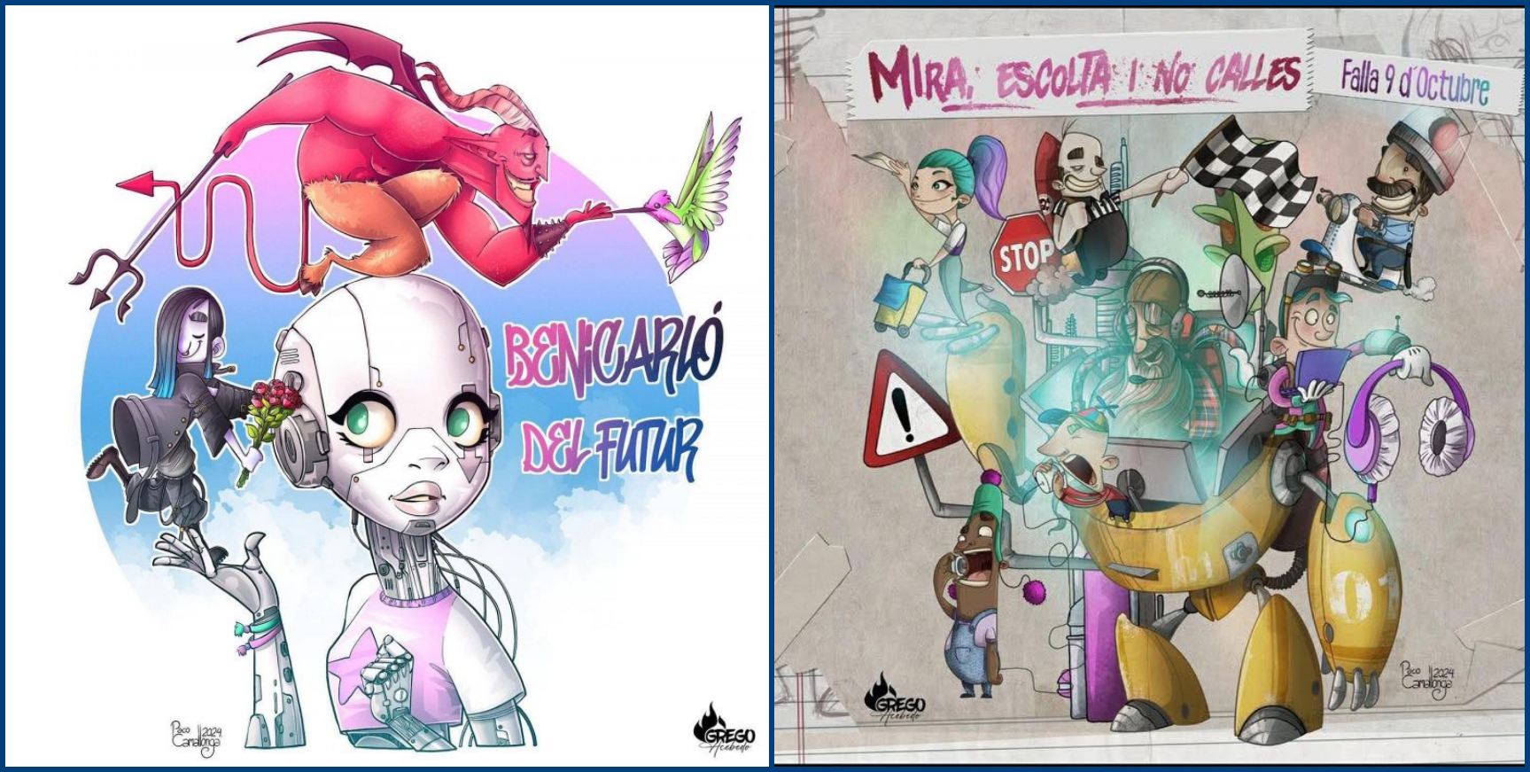 Grego Acebedo es el encargado de realizar ambas fallas. La Falla grande  con el lema Benicarló del futur y la falla infantil con el lema Mira, escolta i no calles.