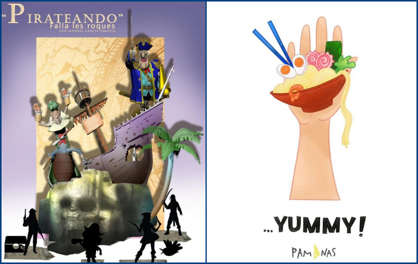 La Falla grande es de José Manuel García «Pachi», con el lema Pirateando y la falla infantil es de Fran Tarazona con el lema Yummy!.