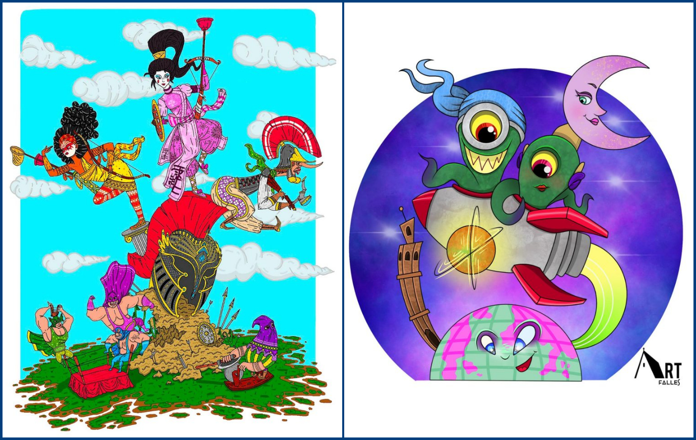 La Falla grande es de Jaune Cortell, con el lema Guerres y la falla infantil es de Barraques Art con el lema Univers Faller.