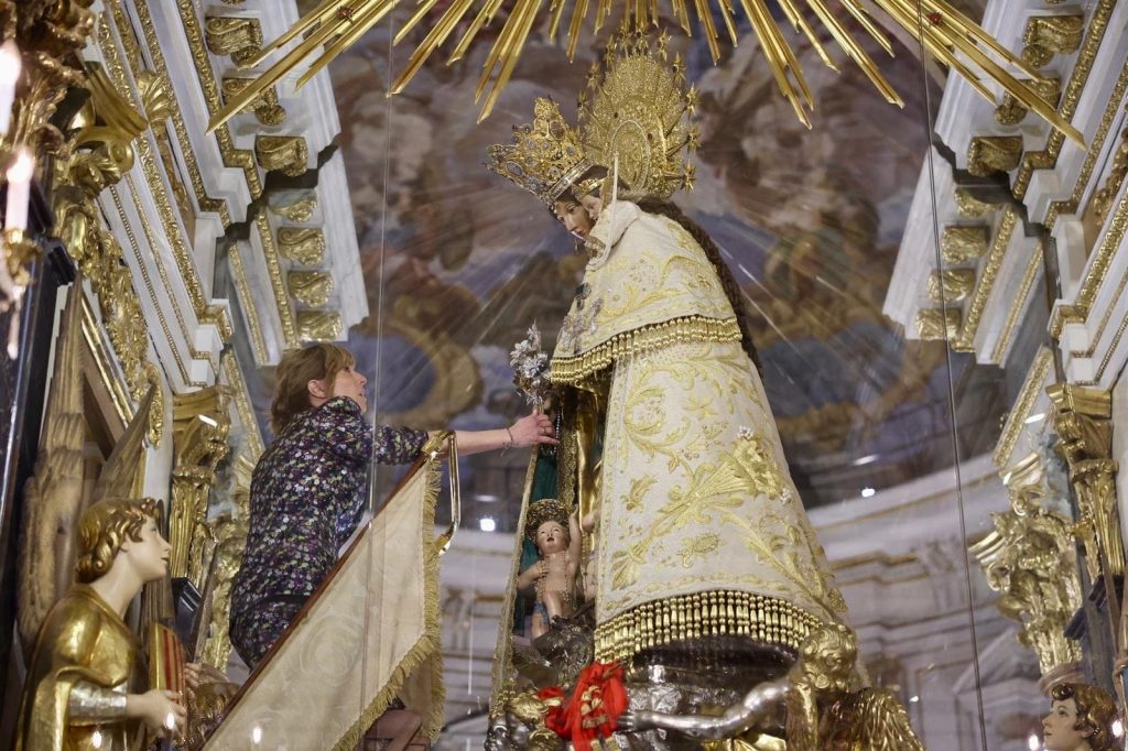 Por último, las Falleras Mayores, sus mantenedoras y la alcaldesa de Valencia, María José Catalá, han subido al camarín de la Virgen para disfrutar de un privilegio reservado para ellas y poner fin a una jornada de emoción e ilusión por la próxima llegada de la semana fallera.