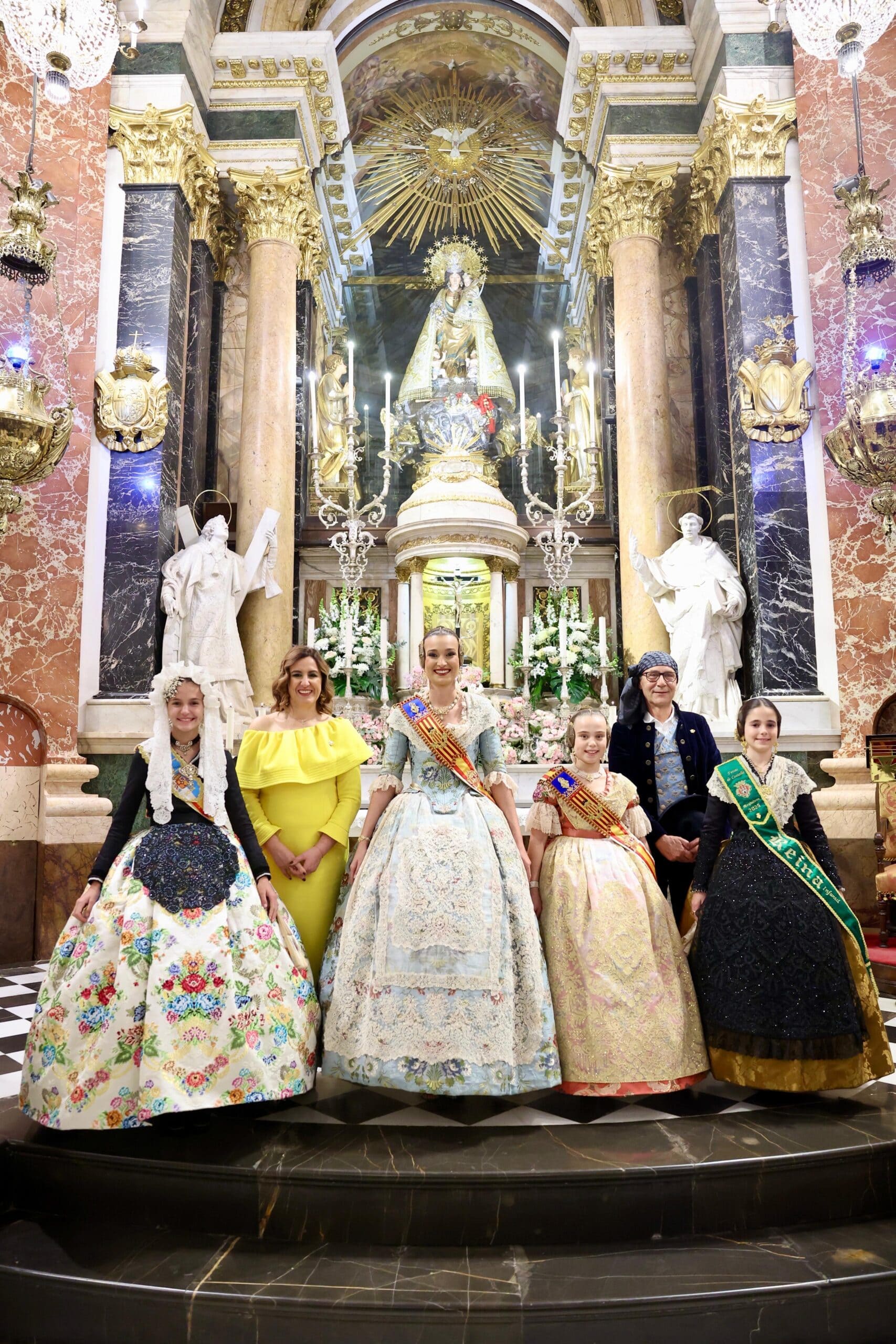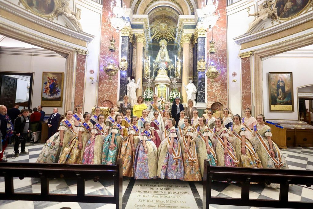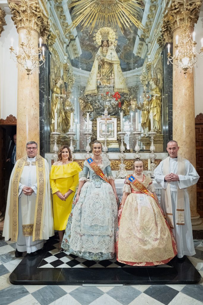 Hasta la Basílica también acudieron las representantes infantiles de Castellón y Alicante y algunos miembros de JCF para acompañar a las Falleras Mayores  de Valencia, y que han podido vivir este momento cerca de sus familias.