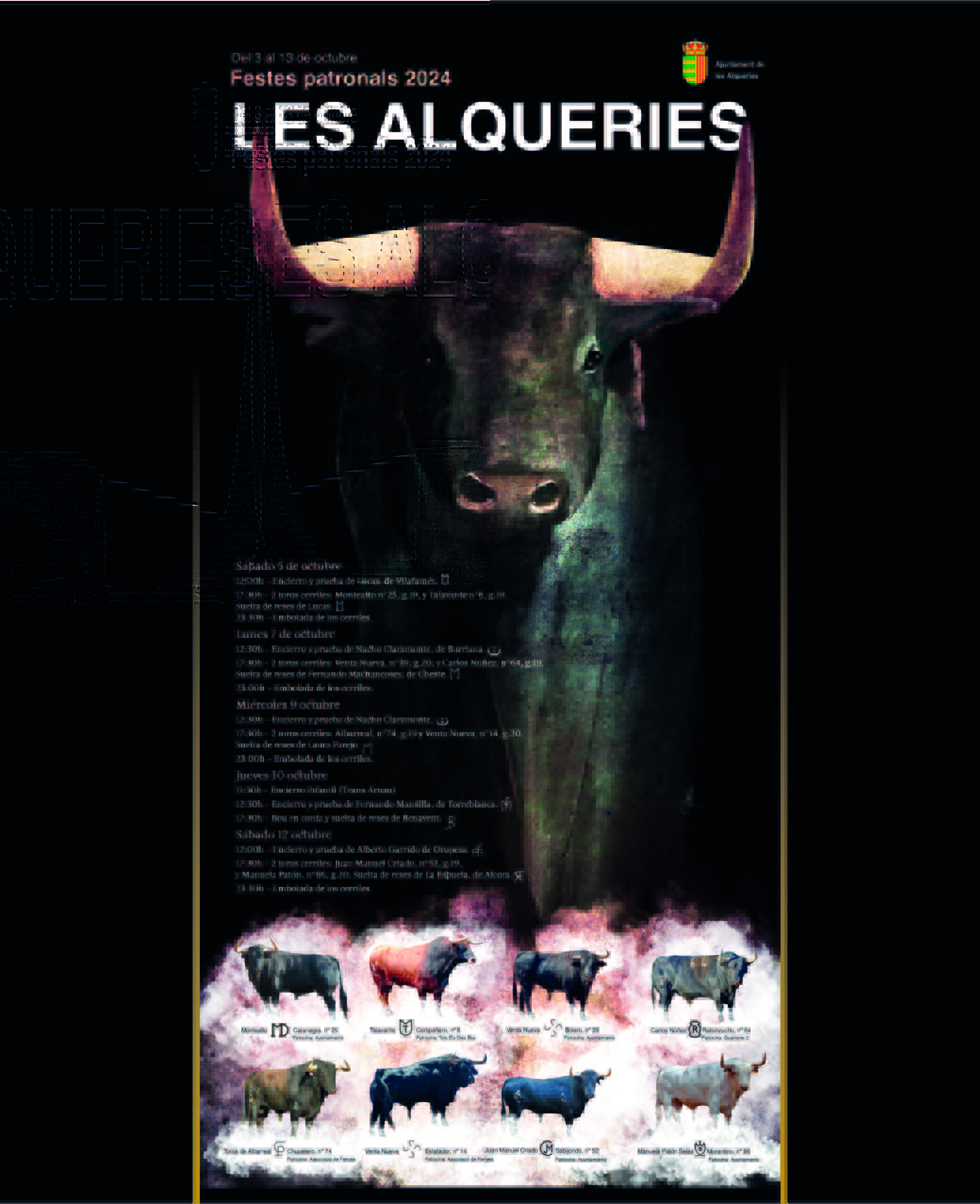 El Ayuntamiento de Les Alqueries presenta el programa taurino de las Fiestas Patronales en honor a la Virgen del Niño Perdido 2024, que se celebrarán del 3 al 13 de octubre. Un cartel que destaca por su variada oferta de modalidades taurinas.