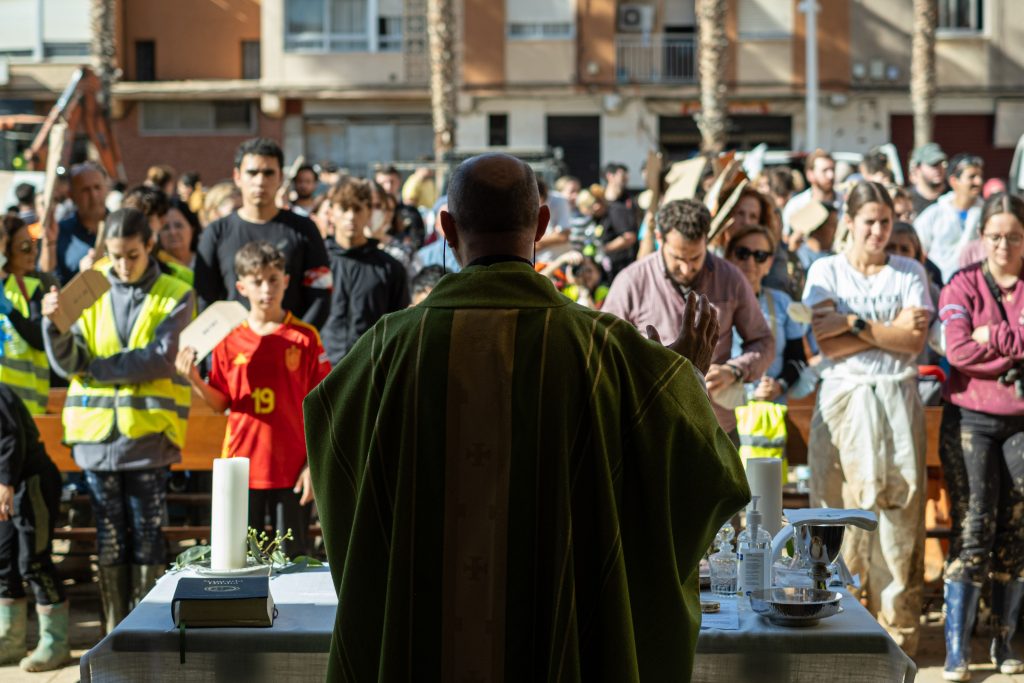 Las parroquias de la archidiócesis de Valencia, que están elevando oraciones por los damnificados por la DANA, celebraron ayer misas de campaña en aquellas poblaciones más afectadas, cuyos templos siguen dañados o en proceso de limpieza por las inundaciones o porque, la gran mayoría de ellos, se han convertido estos días en centros logísticos para el reparto de ayudas de primera necesidad.