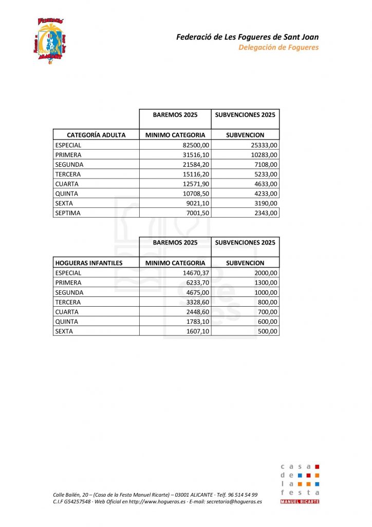 La Federació de les Fogueres de Sant Joan ha presentado a la asamblea el cuadro de baremos de categorías de fogueres de cara al nuevo ejercicio. La principal novedad es la creación de la 7ª categoría adulta para “aliviar a las comisiones que van más justas a la hora de los presupuestos anuales” ha indicado durante la presentación el presidente del colectivo festero, David Olivares. “No queremos que las comisiones se acomoden en los mínimos, pero sí ayudar a que las asociaciones que tengan problemas puedan plantar en una categoría inferior durante un número limitado de ejercicios” ha puntualizado Olivares.