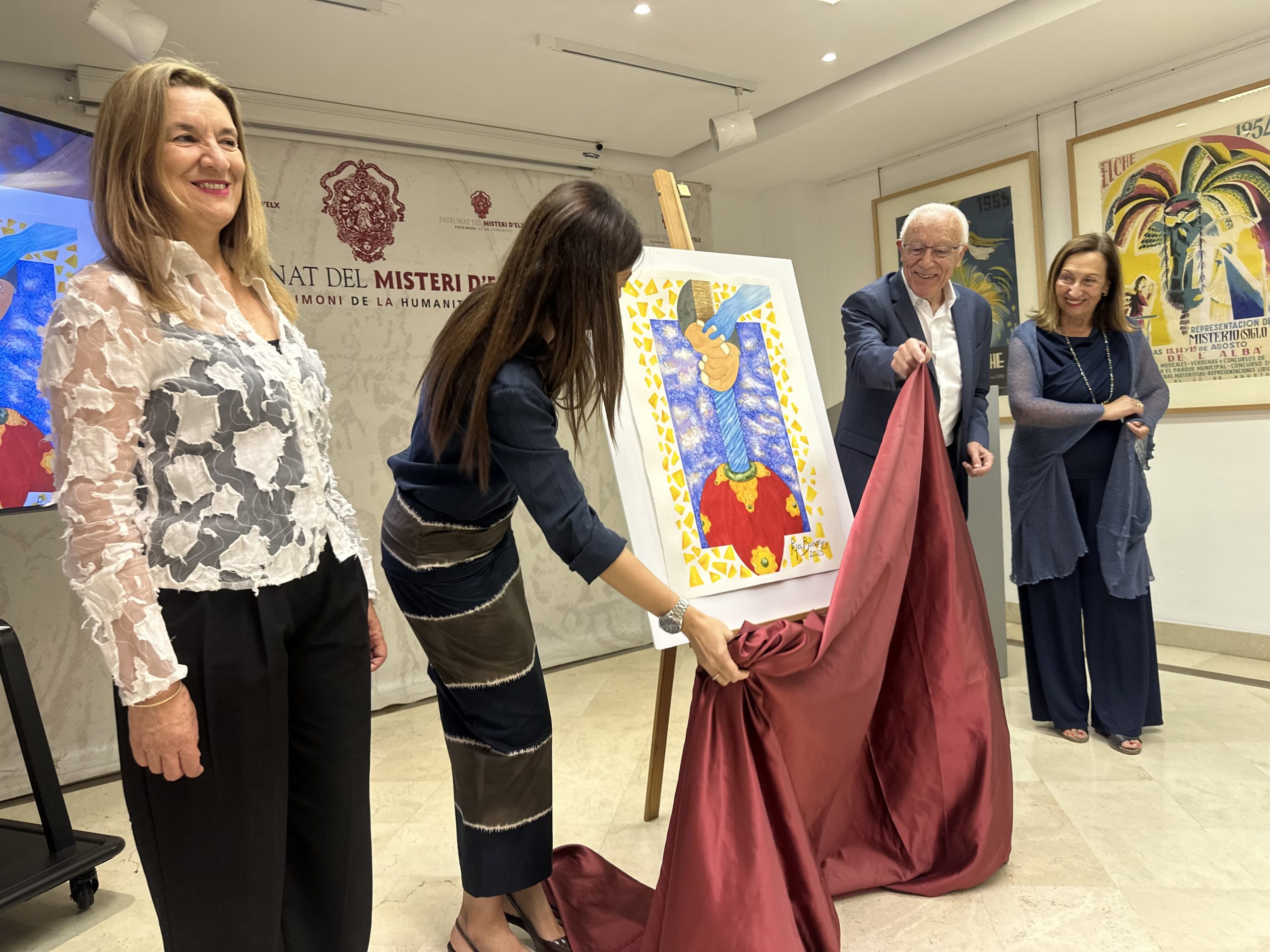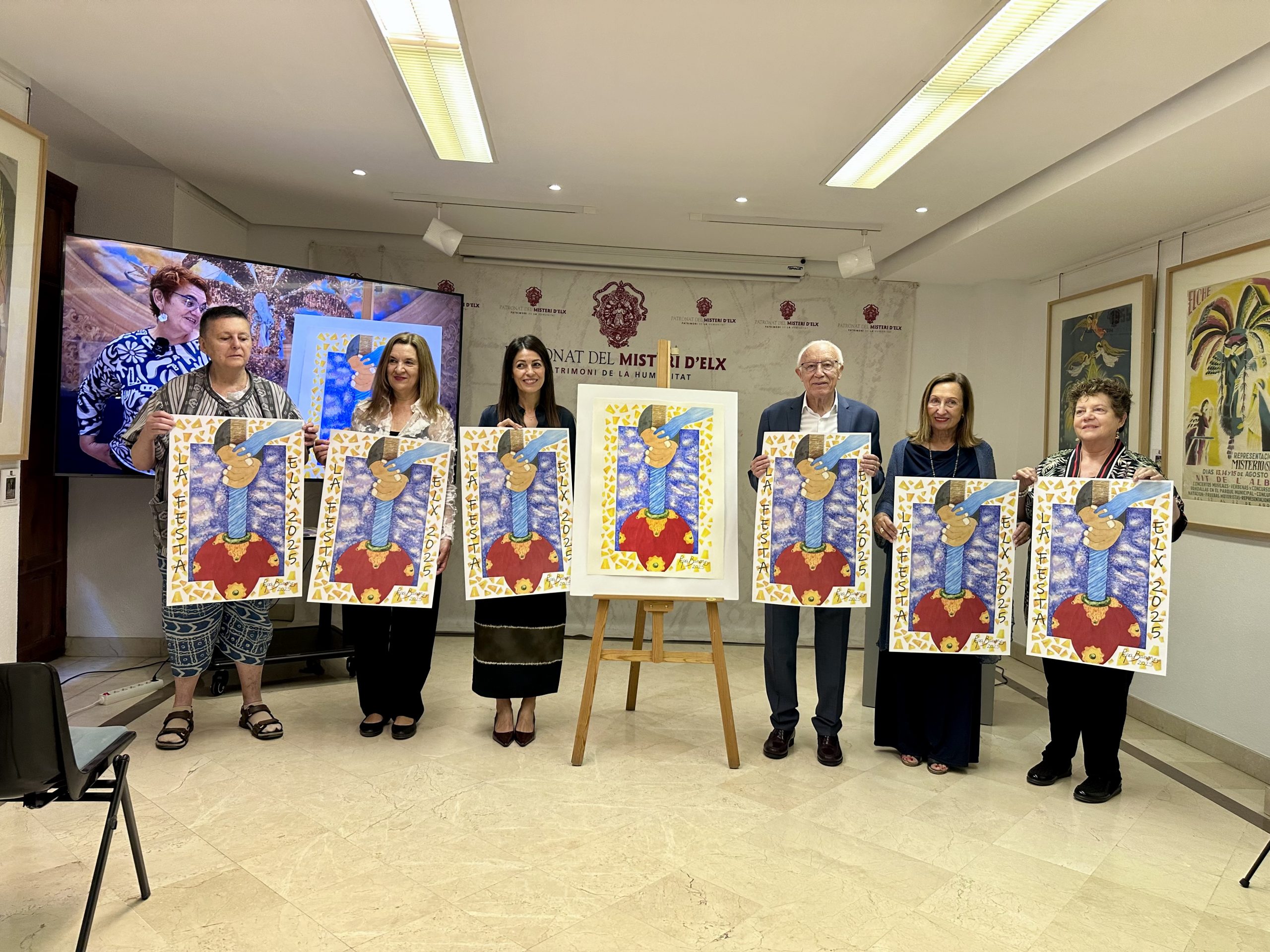 Las representaciones del Misteri d’Elx de 2025 ya tienen imagen oficial. El cartel anunciador, obra de la artista ilicitana Pepa Ferrández Bañón, ha sido presentado hoy en la Casa de la Festa en un emotivo acto que ha contado con la asistencia de la concejal de Turismo y Cultura, familiares de la artista y miembros del Patronato.