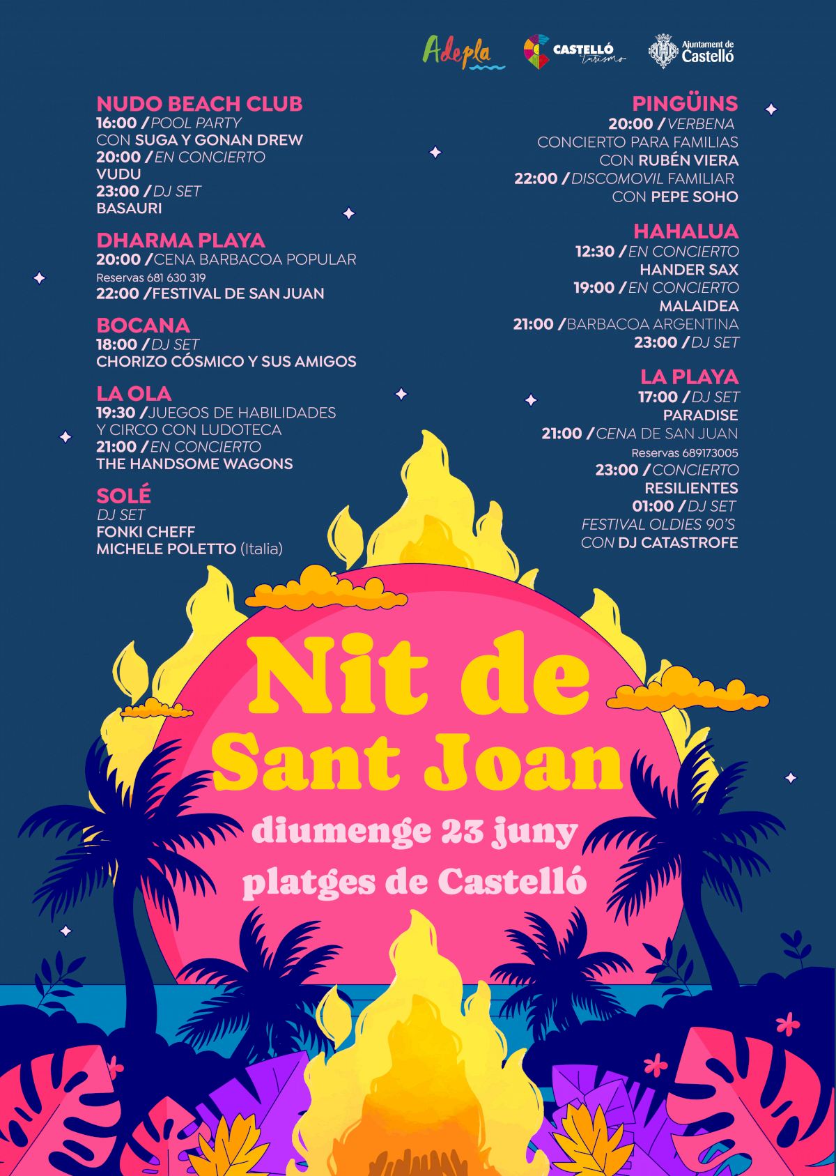 La Asociación de Empresarios y Entidades Deportivas Playas de Castellón (Adepla) ha organizado una variada programación para la Nit de Sant Joan, que se celebrará el domingo 23 de junio en las playas del Gurugú y el Pinar. Con actividades diseñadas para atraer a familias y jóvenes, este evento se consolida como una de las festividades más destacadas en el calendario de Castellón, ofreciendo una combinación única de tradición, música y entretenimiento.