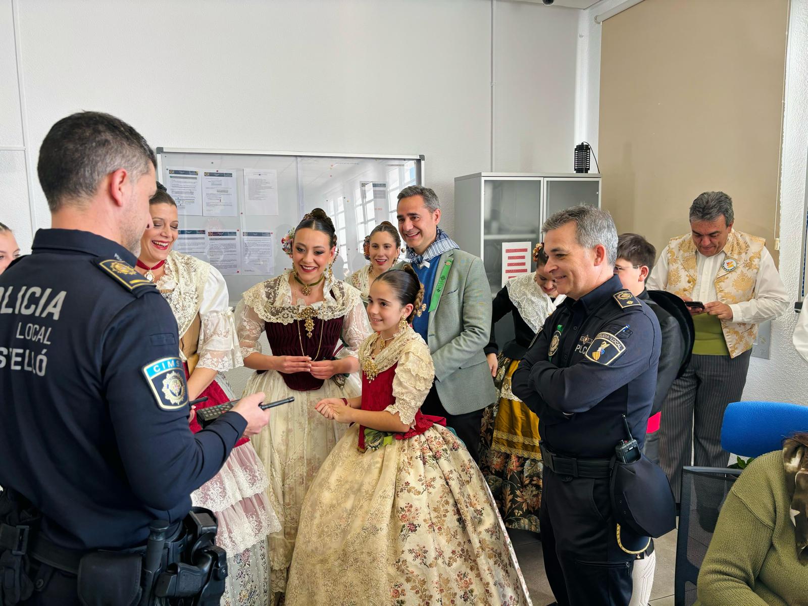 El concejal de Seguridad y Emergencias, Antonio Ortolá, ha recibido junto al Comisario Jefe de Castellón, Francisco Javier Catalán, y el Jefe de Bomberos, Antonio Costa, a las Reinas de las Fiestas, Paula Torres y Carla Ibáñez, junto a su Corte de Honor, en su visita a las instalaciones de la Policía Local y Bomberos de Castellón en Tetuán XIV.
