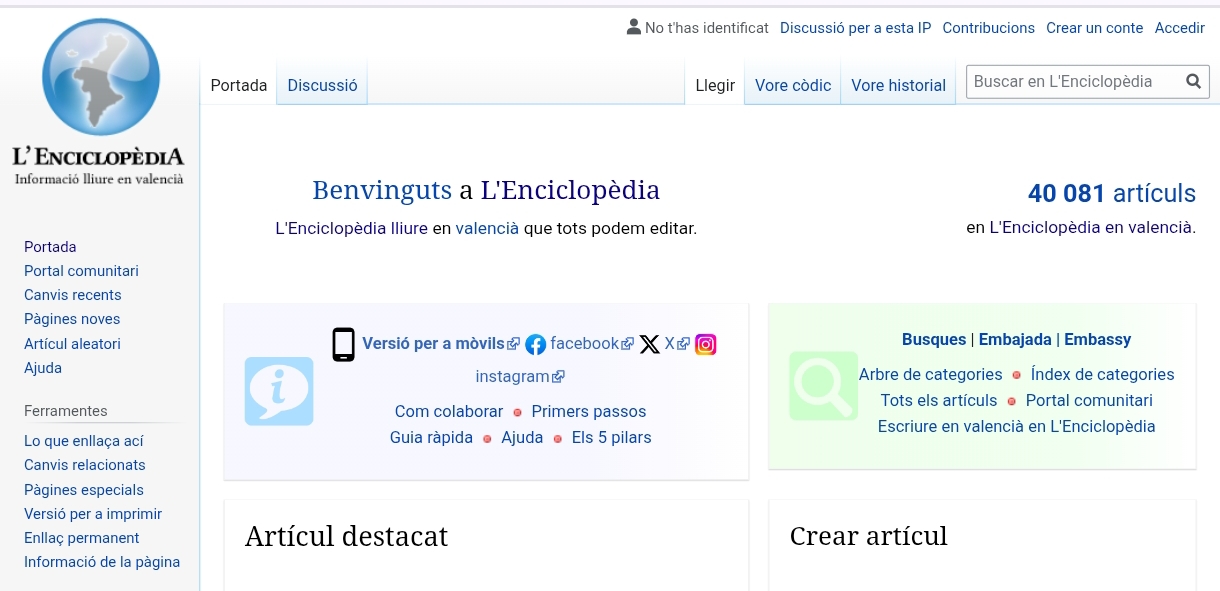 Lo Rat Penat vol expressar la seua més sincera felicitació a “L’Enciclopèdia” en valencià per haver alcançat la destacada sifra de 40.000 artículs publicats. Esta fita supon un gran pas avant en la consolidació d’un proyecte naixcut en 2007 en l’objectiu de difondre el coneiximent, la llengua i la cultura valencianes a través d’internet.