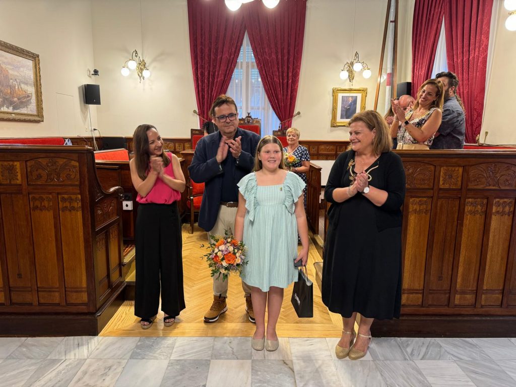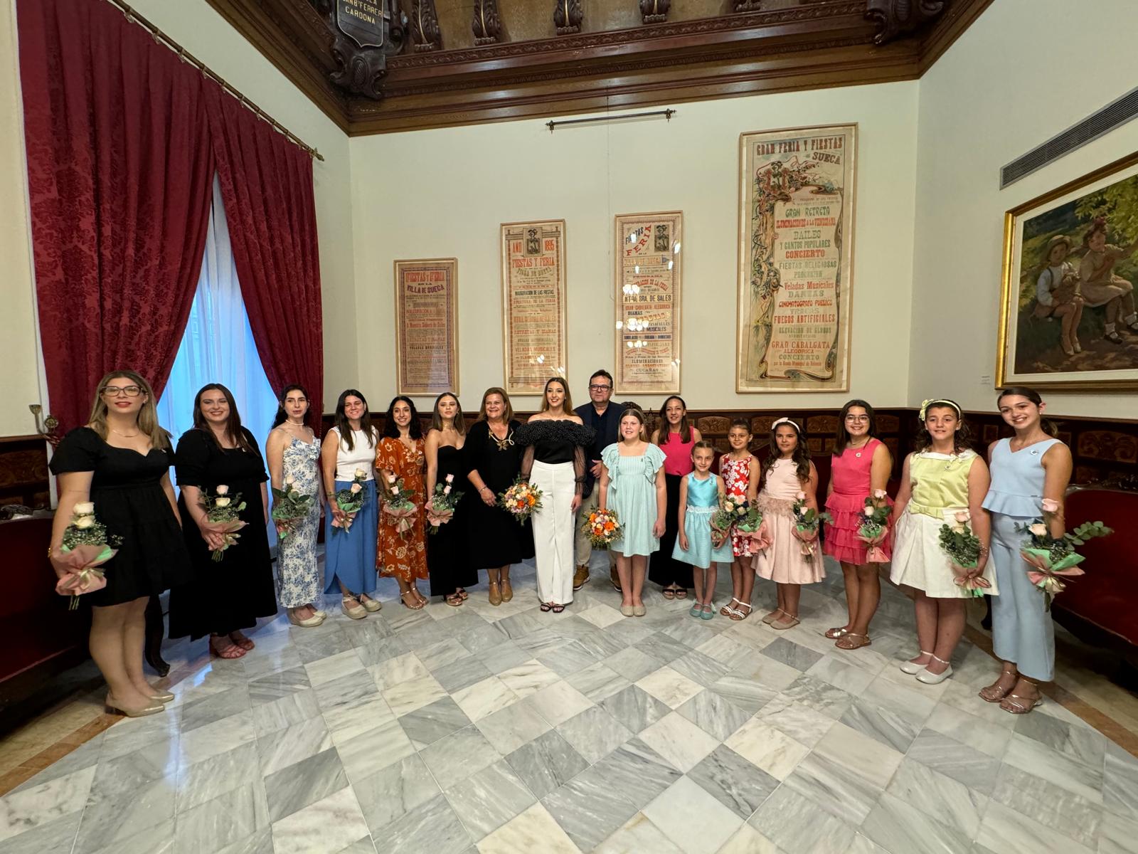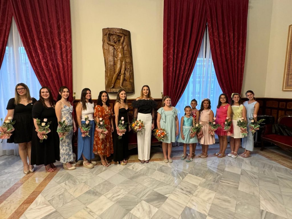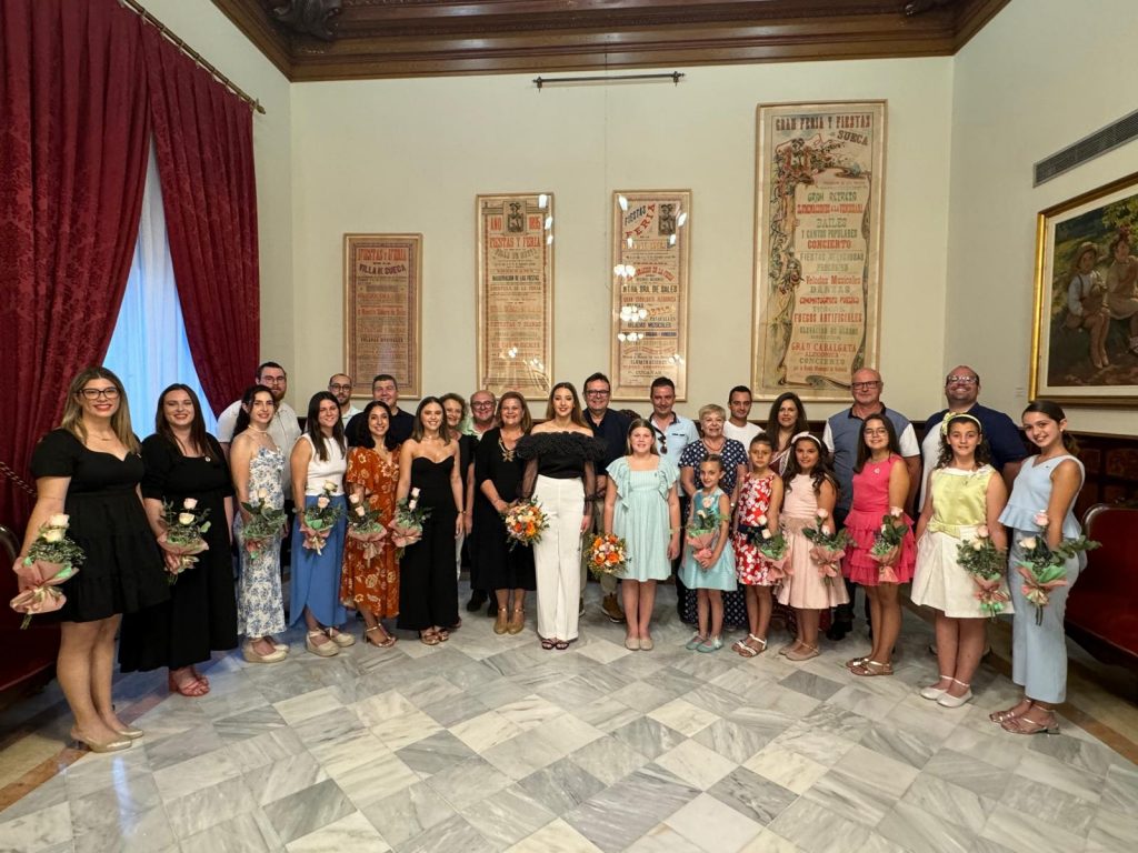 El saló de plens del consistori va acollir ahir a la vesprada el tradicional acte de presentació oficial davant la corporació municipal de les falleres majors de Sueca, El Perelló i Mareny de Barraquetes 2025, la xiqueta Adriana Naval Tornero, de la falla Avinguda d’Espanya, i la jove Laura Gomar Llinares, de la falla 18 de Juliol, i les seues corts d’honor. L’alcalde de Sueca, Dimas Vázquez; la regidora de Falles, Gema Navarro; i la presidenta de la Junta Local Fallera, Lorena Sendra; van ser els encarregats de rebre una a una a les 14 protagonistes de l’acte que representaran a les Falles del municipi en 2025. A més d’un ram de flors, van rebre per part de l’Ajuntament uns obsequis.