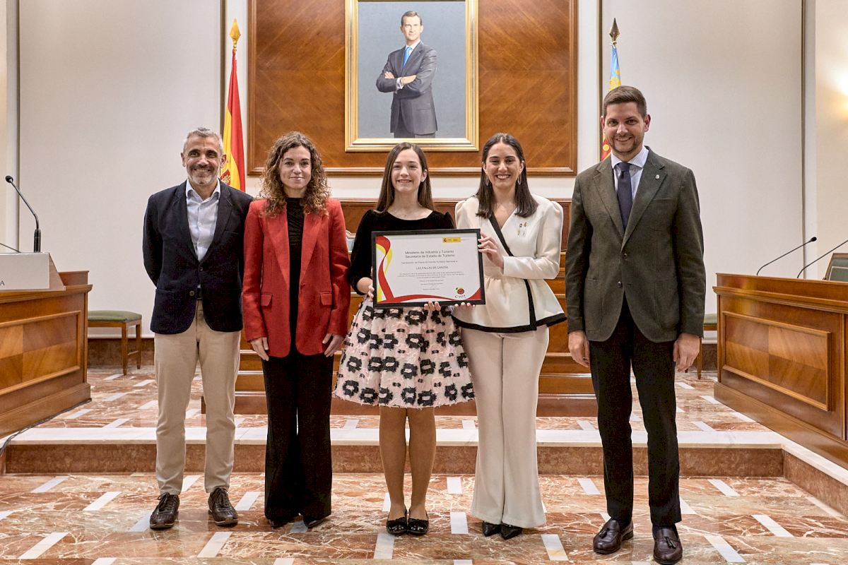 La distinció ha sigut atorgada per la secretària d’Estat de Turisme, Rosario Sánchez, i l’alcalde de Gandia, José Manuel Prieto, al president de la Federació de Falles de Gandia, Francisco Martínez, i a les falleres majors de 2025, Ariadna Apio i María Cremades.