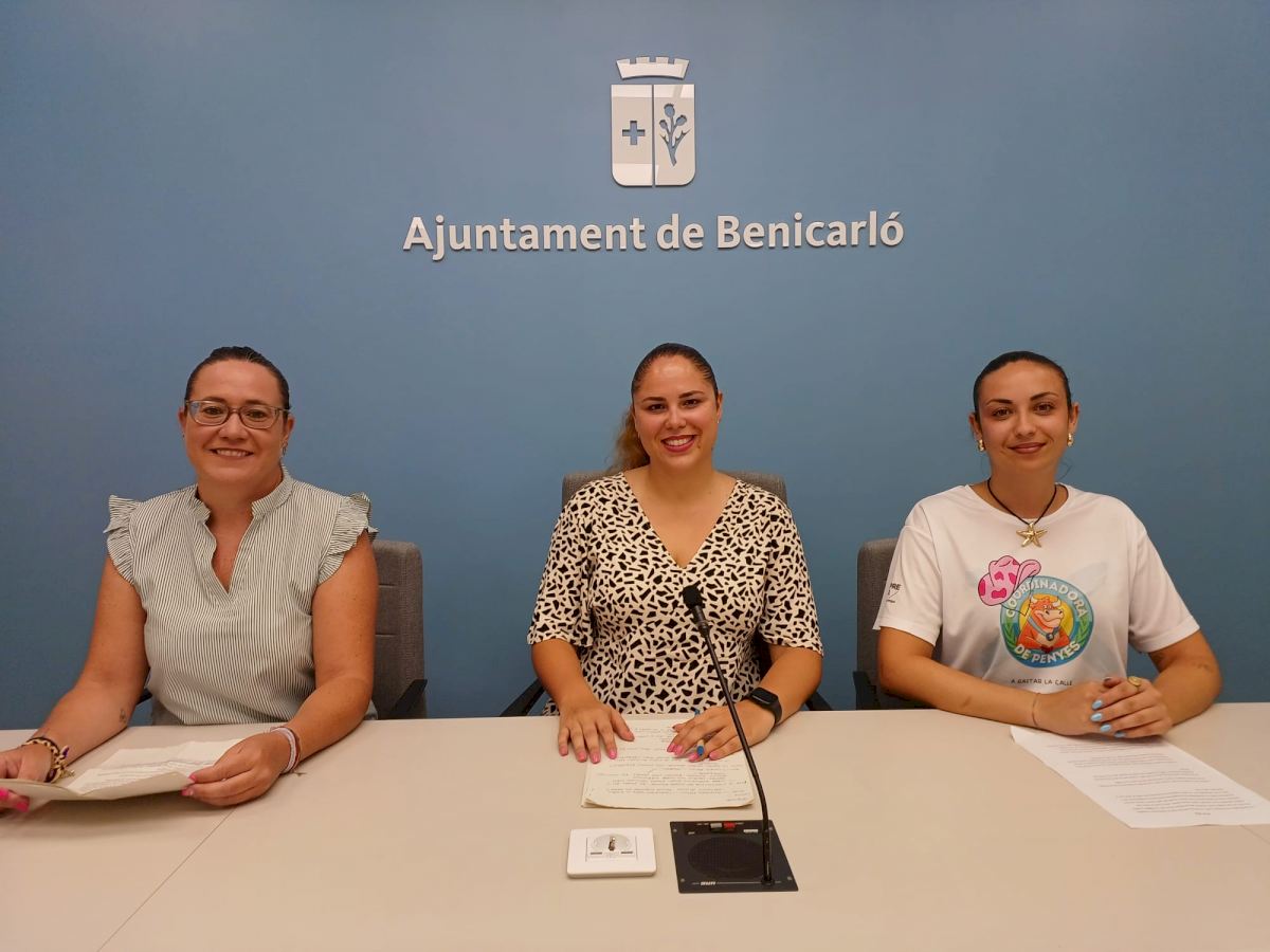 La regidora de Festes, María Teresa Pellicer, acompanyada de la vicepresidenta de la Comissió de Festes, Maria Herrera, i la vicepresidenta de la Coordinadora de Penyes, Sandra Baena, ha presentat avui un primer avançament del programa de les Festes Patronals de Benicarló, que se celebraran del 17 al 25 d’agost.