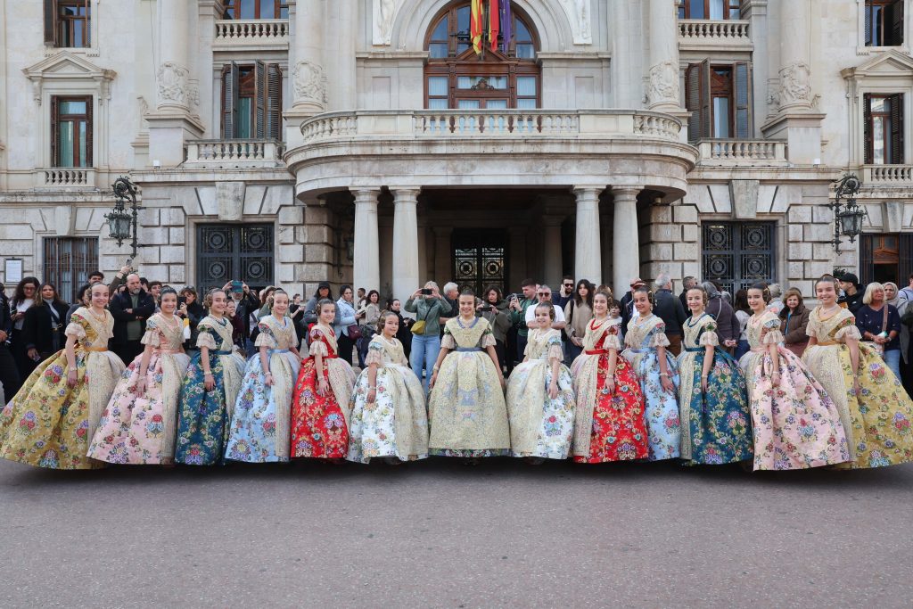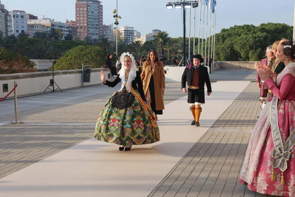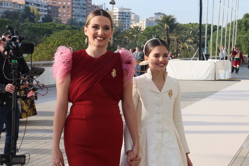 Després de la baixada de les 12 xiquetes, han format un corredor en l’entrada del Palau de la Música, que torna a albergar després de 5 anys este acte tan solemne. I així formades, han esperat l’entrada de Marina, que no s’ha volgut fer esperar.