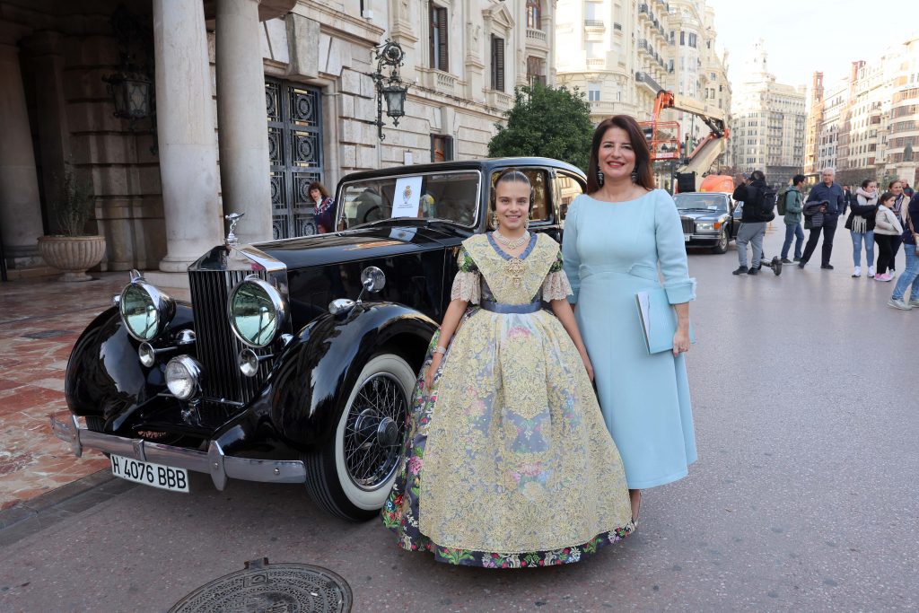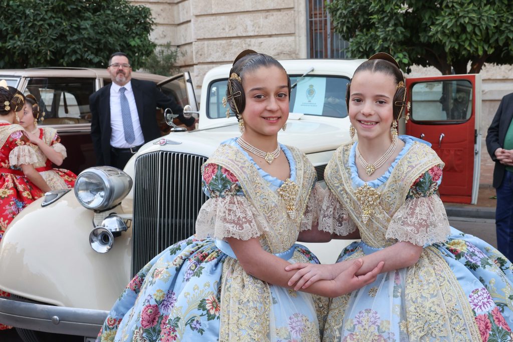 Marina García Arribas i la seua Cort d’Honor han arribat a la Plaça de l’Ajuntament on els esperaven els cotxes de l’Antigor, per a portar-les al Palau de la Música.