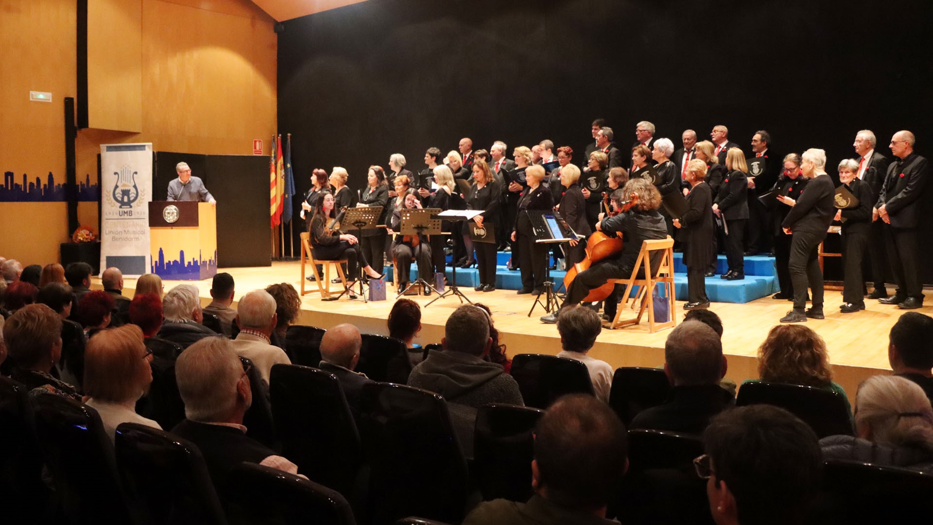 En el concierto, dirigido por el también músico de la Unión Musical y profesor de Conservatorio Joaquín García Fernández, los miembros de la Coral de la UMB deleitaron al público con un ecléctico repertorio que comenzó con la canción popular valenciana ‘La meua xiqueta’ y continuó con la interpretación de otros temas conocidos, como ‘De colores’; ‘América’; ‘Edelweiss’; ‘What a wonderful world’; ‘Moon river’ de Henry Mancini; ‘Unchained melody’; ‘Te quiero, dijiste’ de María Grever; ‘El día que me quieras’ de Carlos Gardel; ‘Ave María’ de Caccini; y ‘Va, pensiero’ de Verdi, para finalizar con la obra de Mozart ‘Ave verum corpus’.