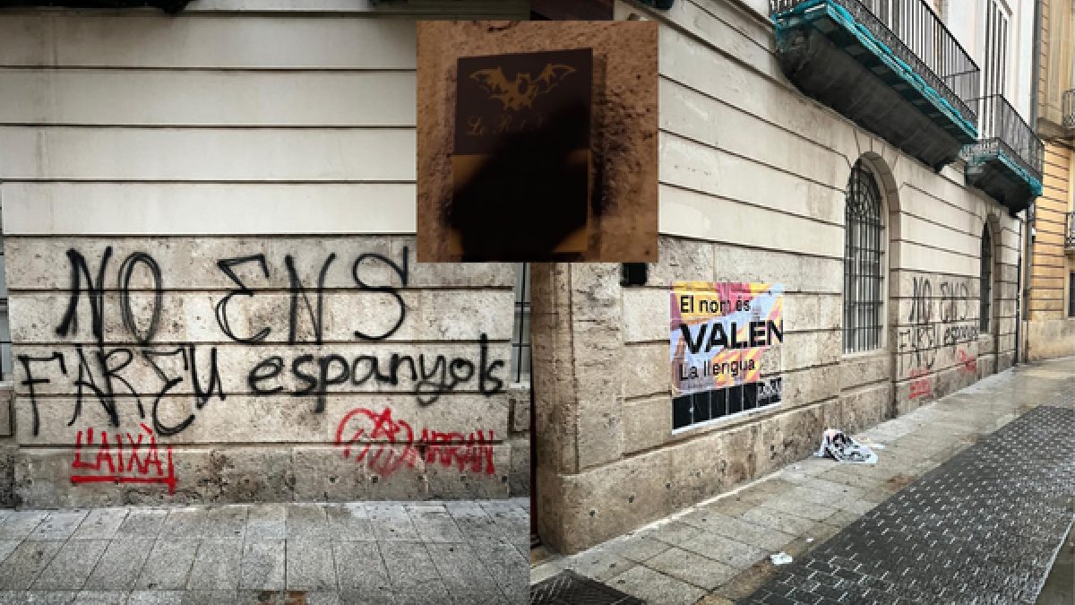 Este nou acte de vandalisme, odi i intolerància reproduïx el mateix modus operandi que dita organisació va amprar el passat 9 d’octubre, quan la sèu històrica de Lo Rat Penat va ser igualment atacada en pintades amenaçants, embrutant ademés un edifici històric protegit que és patrimoni de tots els valencians.