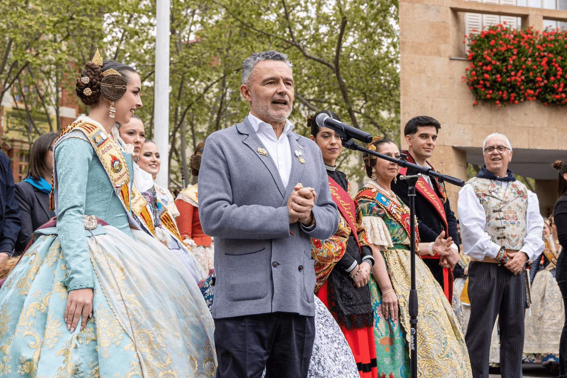 Después ha tomado el micrófono la Fallera Mayor, Azahara Martínez, quien, muy emocionada, ha señalado que «hoy, la tierra de las flores, de la luz y del amor llega a la capital riojana para celebrar nuestra fiesta, cruzamos kilómetros, unimos cultura y demostramos que las fallas no entienden de fronteras».
