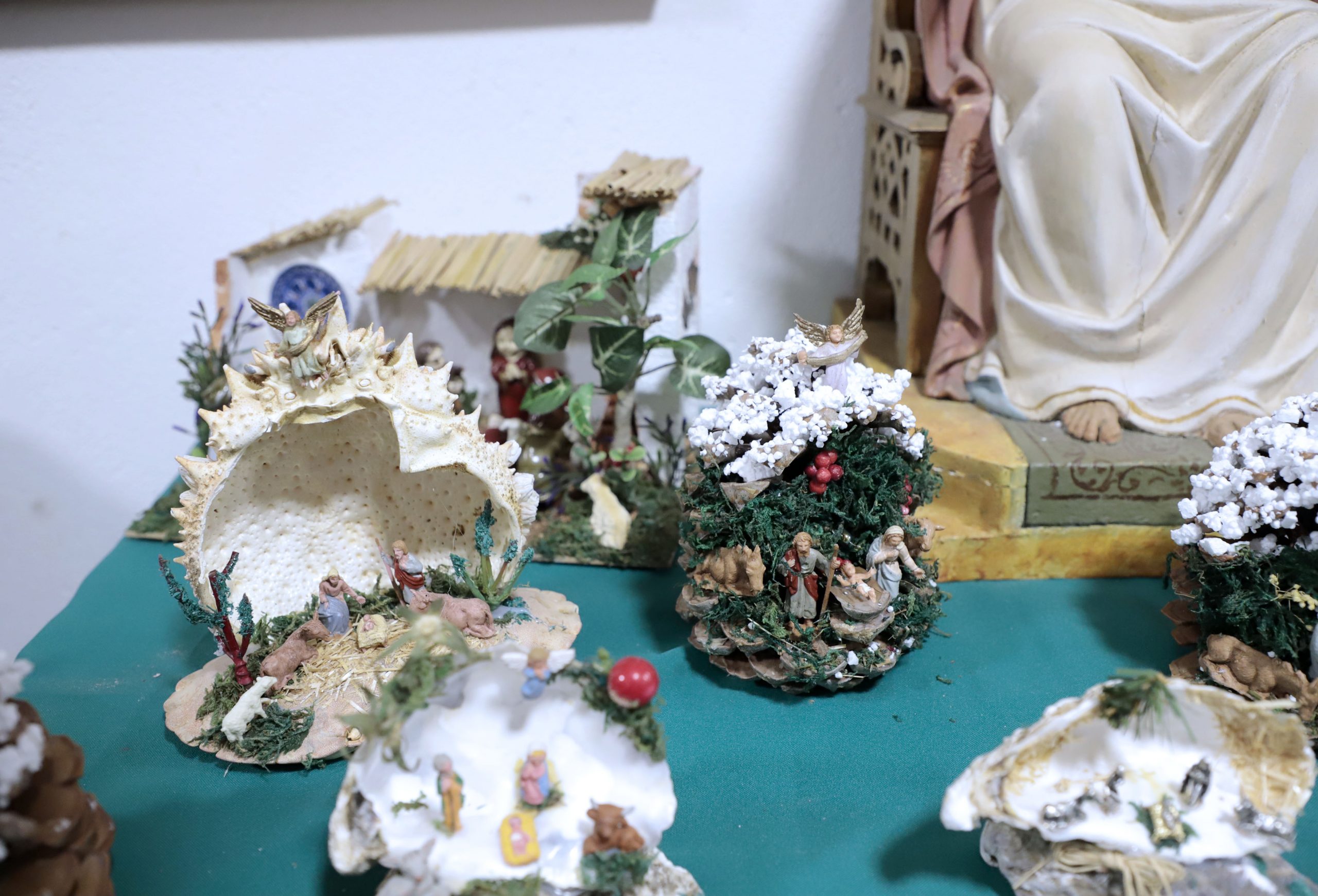 Los nacimientos han sido elaborados con materiales como cartones, corchos o maderas, “todo reciclado, siguiendo la idea de Fray Conrado, a quien se le ocurrió uno de sus nacimientos que recordamos con más cariño, dentro de una piña, que también incluimos en la exposición de este año, al igual que otros nuevos que se nos van ocurriendo y elaboramos”, subrayan.