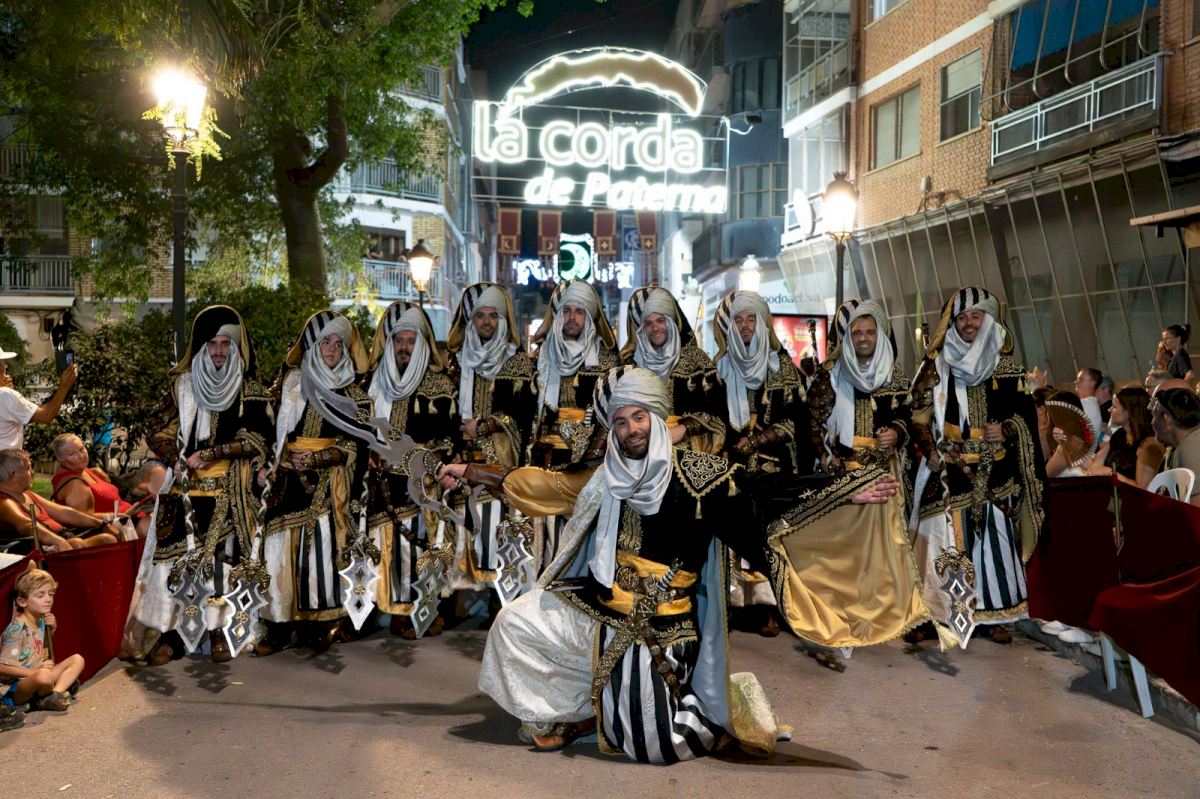 De este modo, el sábado, 23 de agosto, se celebró la Gran Nit Mora, con el paso de las 13 comparsas encabezadas por la Capitanía de Abbasies, fundada en el año 1989, y cuyas filaes avanzaron con majestuosidad por las calles de Paterna con Javier Roig en el puesto de Capitán y Raquel de la Montaña como abanderada.