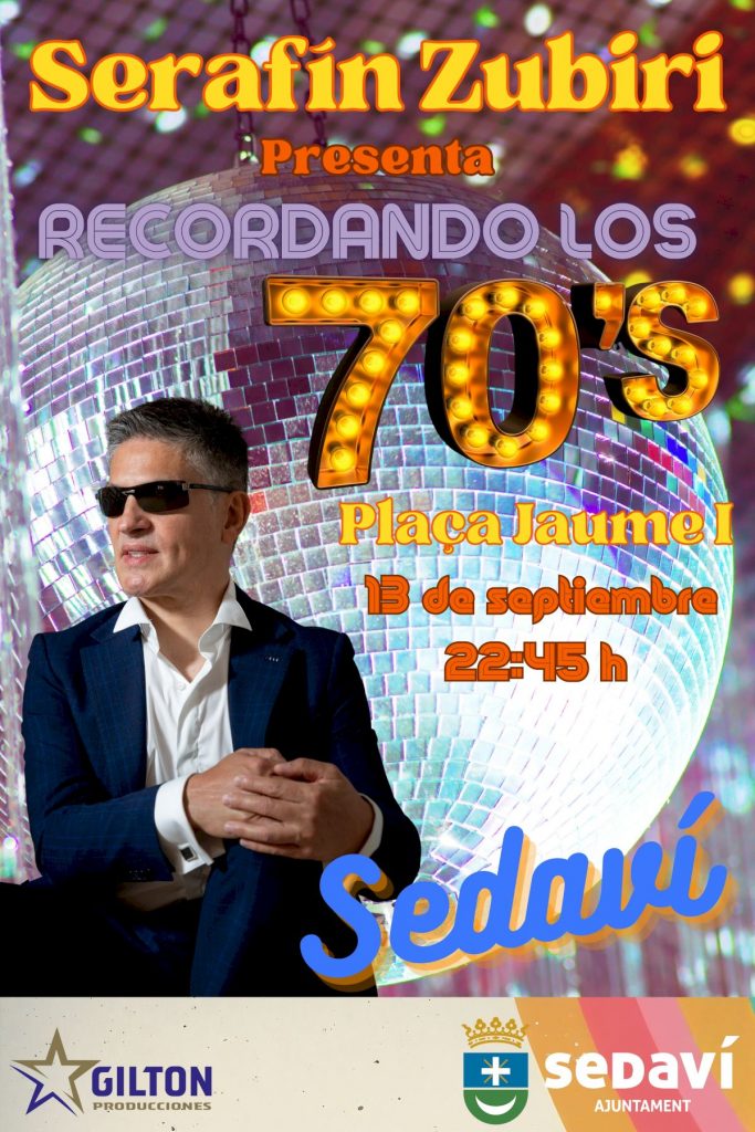 La programación continuará el sábado 13 de septiembre a las 22:45 h, también en la Plaza Jaume I, con la actuación de Serafín Zubiri y su banda de cinco músicos, Zubiri’s Band. En esta ocasión, el artista ofrecerá un homenaje a los grandes éxitos de los años 70. Se trata de una cita muy esperada tras el éxito de su actuación en 2024 dedicada a Nino Bravo, y de su gesto solidario el pasado diciembre, cuando sorprendió al pueblo con un concierto improvisado al piano para transmitir ánimo y apoyo tras la tragedia.