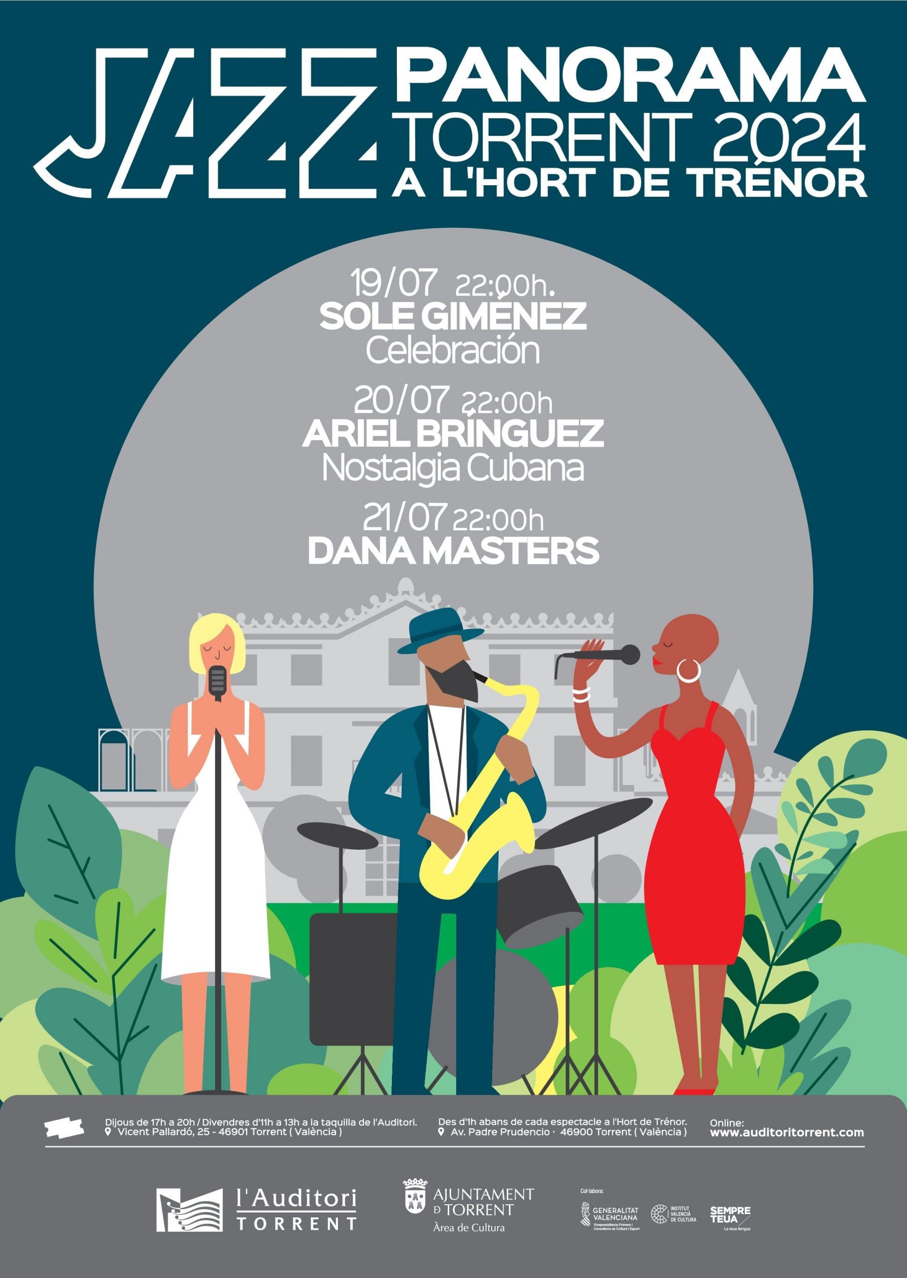 Los Jardines de l’Hort de Trénor de Torrent sirven de escenario un año más a los conciertos del festival JAZZ PANORAMA. Del 19 al 21 de julio, podremos disfrutar de tres magníficas propuestas en un entorno que ya es, desde hace años, el preferido por un gran número de amantes del jazz para disfrutar de la música durante las noches de verano.